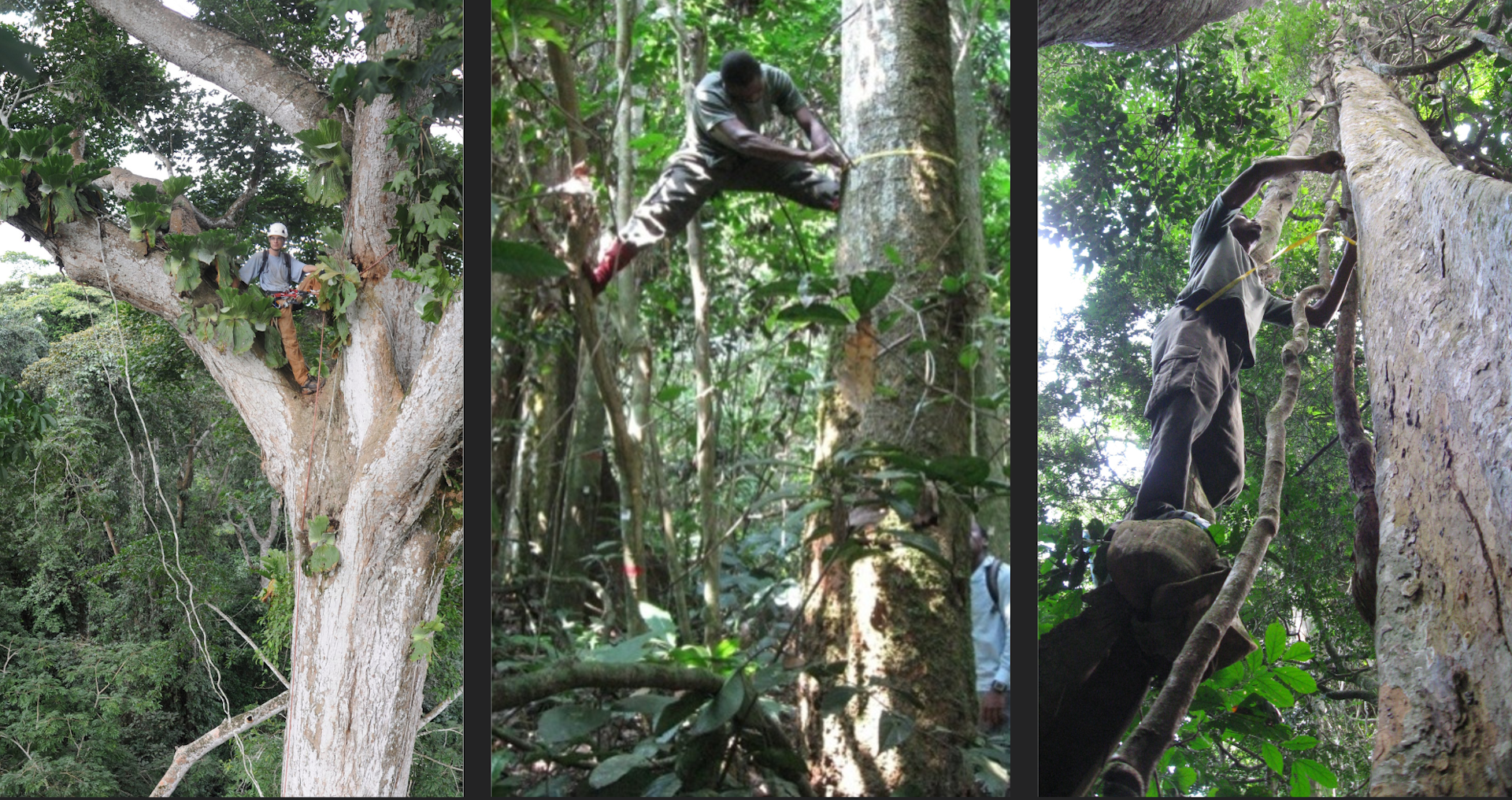 Simple measurements are taken on site, including trunk diameter and, more rarely, tree height. Next, researchers draw up conversion tables known as allometric equations, which use these few measurements to estimate how much carbon a tree contains. The equations are created through felling and weighing a small number of trees. Given that the wet mass of just one of these giants can reach up to 160 tons and that it must be weighed directly in the forest, it can take a dozen workers a whole week to weigh a single tree.