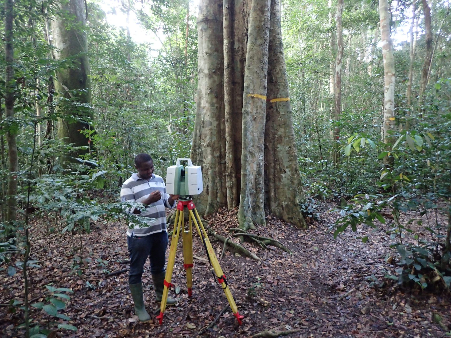 Consequently, it is common to use equations from other regions, which can lead to bias. There are alternatives being developed that do not harm the forest, such as laser scanners, which can now measure the precise volume of standing trees. These methods have helped us produce new allometric equations in Cameroon and the Democratic Republic of Congo, both much more efficiently and without compromising on accuracy.