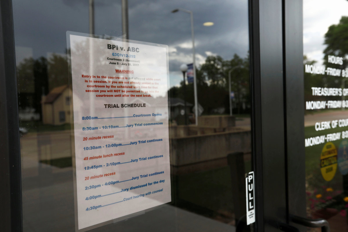 The trial is being held in Elk Point, South Dakota, about 20 miles (32 km) north of BPI’s headquarters, which employs 110 people. Roughly 6 percent of the area labor force is involved in agriculture and related industries, according to the local chamber of commerce.