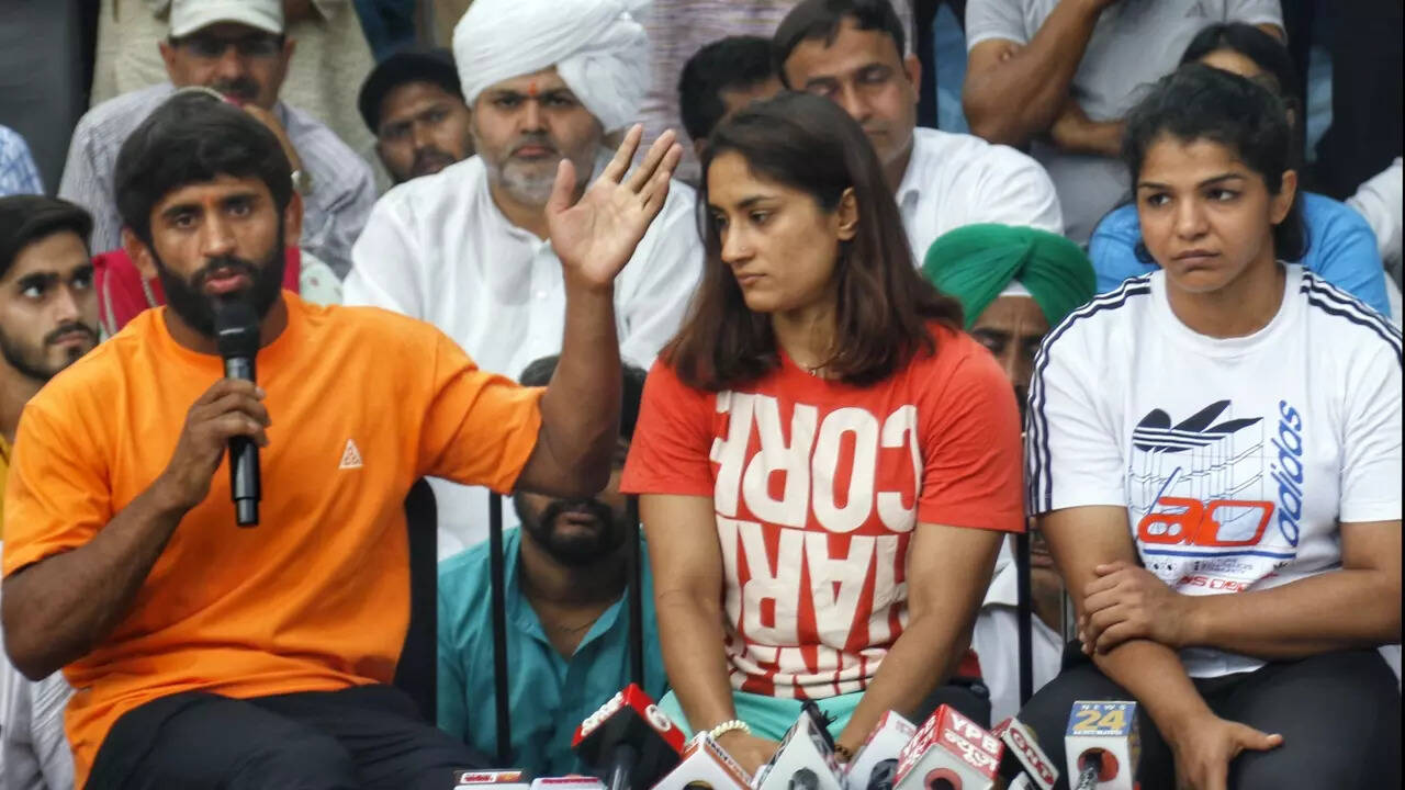NEW DELHI: Olympic bronze medallist Bajrang Punia, one of the prominent faces leading the wrestlers' protest in Delhi, on Sunday accused the media of supporting the Wrestling Federation of India chief Brij Bhushan Sharan Singh more than the players. While celebrated wrestler Vinesh Phogat appealed to the media not to give Brij Bhushan a platform to speak.