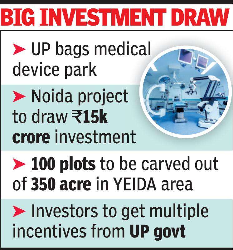 LUCKNOW: The Centre has sanctioned a medical device park in Uttar Pradesh, which is likely to draw an initial investment of Rs 15,000 crore. One among the four parks approved by the Centre, it will be set up at Sector 28 in Yamuna Expressway Industrial Development Authority area of Noida.
