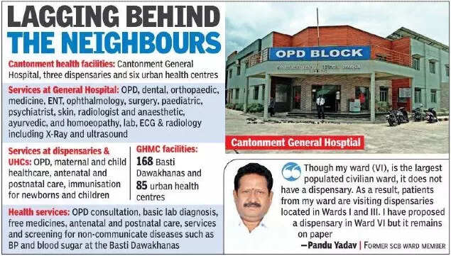 While the dispensaries are managed by SCB, the medical staff there has been deputed by the Telangana medical and health department. “The Cantonment Board has enough vacant lands so why can’t they enhance medical services by developing infrastructure and opening more dispensaries,” questioned V Ramesh Kumar, a retired medical department official and resident of Bowenpally.