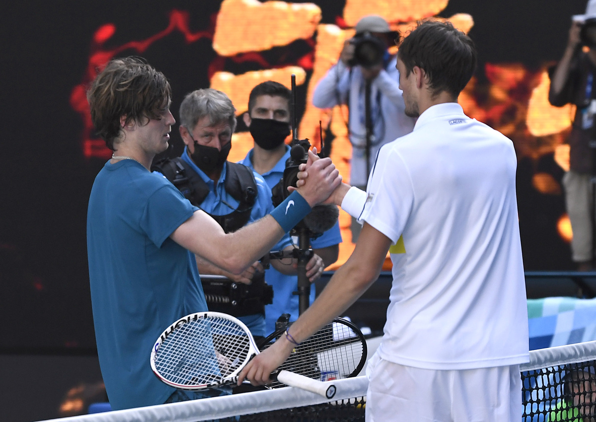 "We had some unbelievable rallies, I'm one of the first players to make Andrey so tired ... It's hard to play (a friend) but we're all so competitive, just need to win, get to that Grand Slam semi-final," Medvedev said.