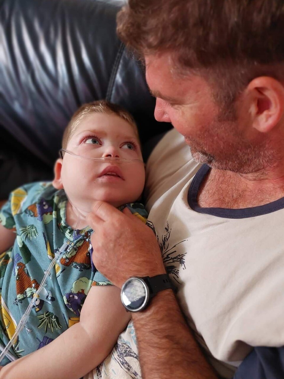 In a Palm Beach holiday unit where oxygen tanks neatly line the wall, five-year-old Kyran Dunlop lets out a loud, elongated yawn.