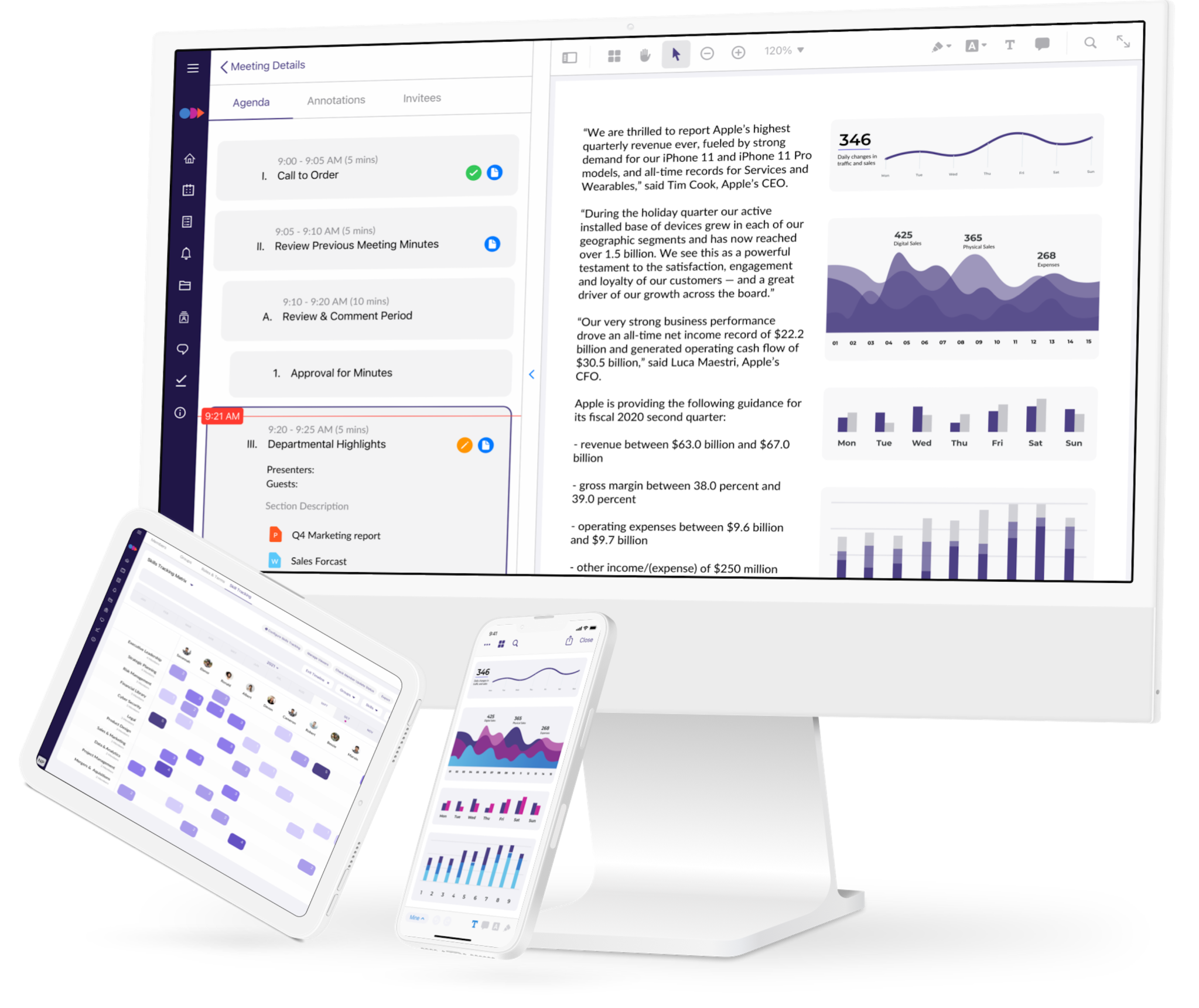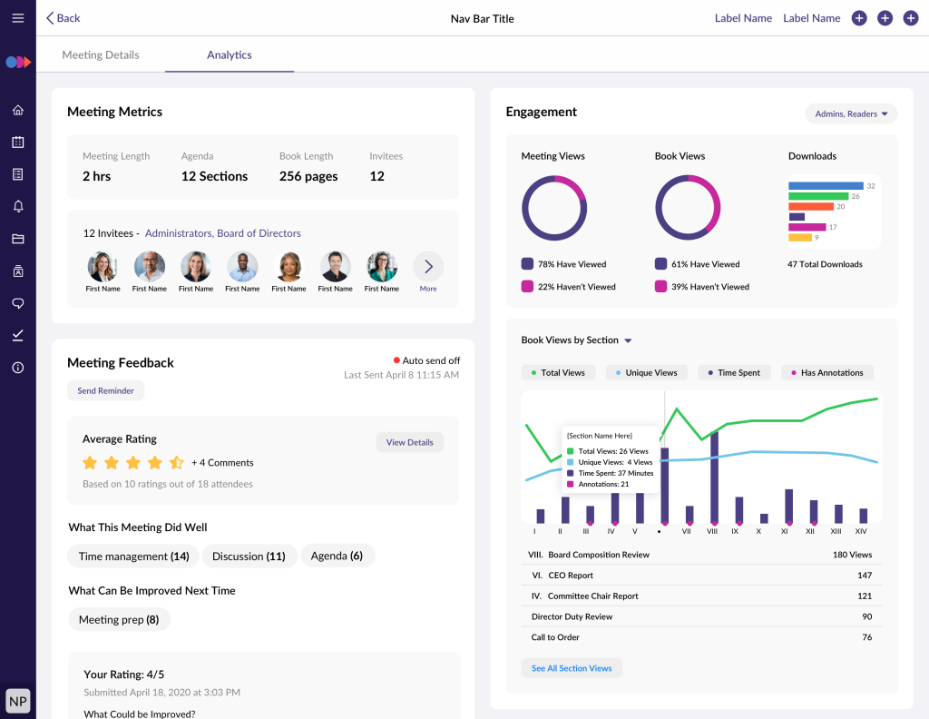 The product itself is straightforward: It keeps all your board-related documents in one place. Users log in like they do with any other productivity tool, and they can access anything and everything the board has discussed. Users can easily search keywords for information captured in past meeting minutes or in previous board books. They can also communicate through the system with other board members, keeping all discussions in a secure, searchable digital home. Before a meeting, administrators can quickly draft and share agendas. The platform integrates with Zoom for meetings, and has e-signature and voting approval features. And it’s full of data and analytics to better understand your organization’s governance.