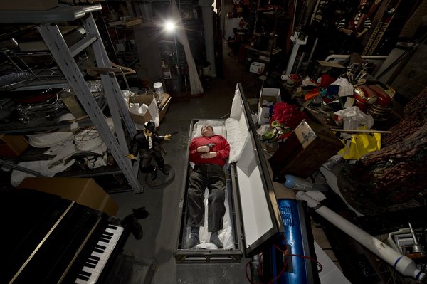 Have him show you his casket. The one he plans to be buried in. He got a deal on it, keeps it in a cluttered storeroom.