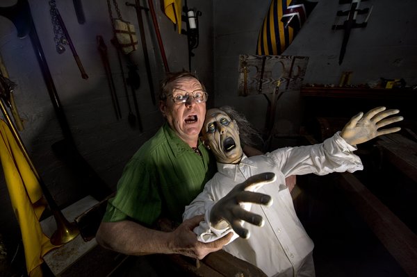 Directions to Vest's business usually include the line, "It's the building with the guillotine out front."