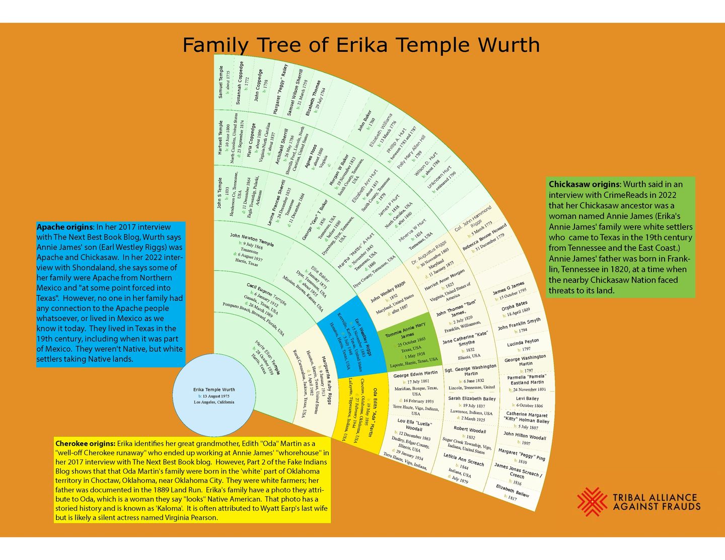 Recent history is littered with people who have been outed as “race fakers”. Some of them were outed by their own family — such as Native American icon Sacheen Littlefeather, whose sisters outed her as white after her death; or Muslim activist Raquel Saraswati, born Rachel Seidel, whose mother told The Intercept that her daughter is white rather than Arab, South Asian or Latin American, as she variously claimed — and others were outed by groups or organizations. A number of political reporters and publications were able to establish fairly quickly that Republican representative George Santos is not actually Jewish, for instance (Santos has since tried to walk back his claims and says he is “Jew-ish”, which is also under question.) And it was the Native American-run organization Tribal Alliance Against Frauds that recently outed the author Erika Wurth and the Queens University professor Robert Lovelace. Their methods include complex genealogical investigation conducted mostly by tribal volunteers. In Wurth’s case, that included the construction of a family tree going back six generations.