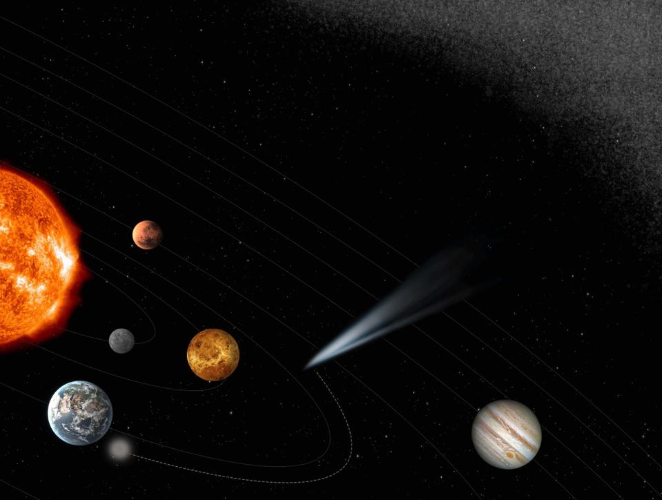 Long-period comets take more than 200 years to complete an orbit around the Sun, but this one is reckoned to on a 600,000-years orbit. Comet Bernardinelli-Bernstein comes from the Oort Cloud, a spherical cloud of icy objects from 50,000 to 100,000 AU from the Sun that surround the Solar System. It’s reckoned that this comet could even be from as far as 60,000 AU.