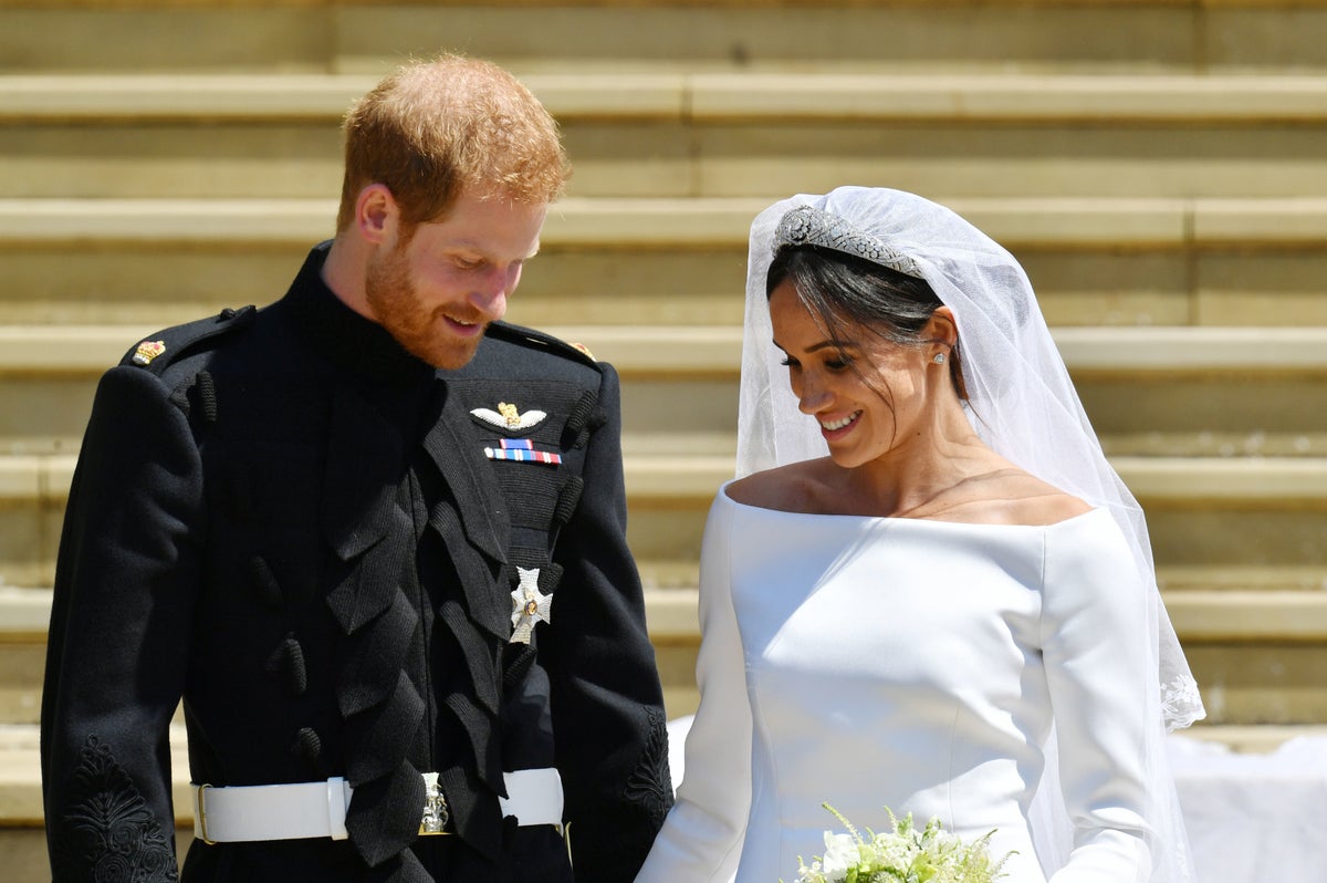 Crowds had flocked to see the Queen’s grandson Harry and American actress Meghan on their wedding day in May 2018 which featured a glittering, star-studded ceremony in the 15th century St George’s Chapel in Windsor Castle.