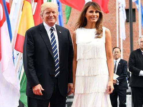 Mrs Trump was pictured greeting Mr Putin with a smile following the meeting and later sat next to him at a dinner at Hamburg’s Elbphilharmonie concert hall.