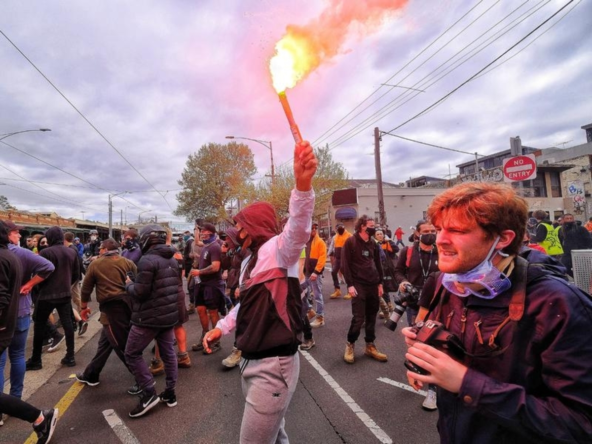Authorities say while there are construction workers in the crowds, there have been other groups including anti-lockdown activists dressed in high-visibility clothing.