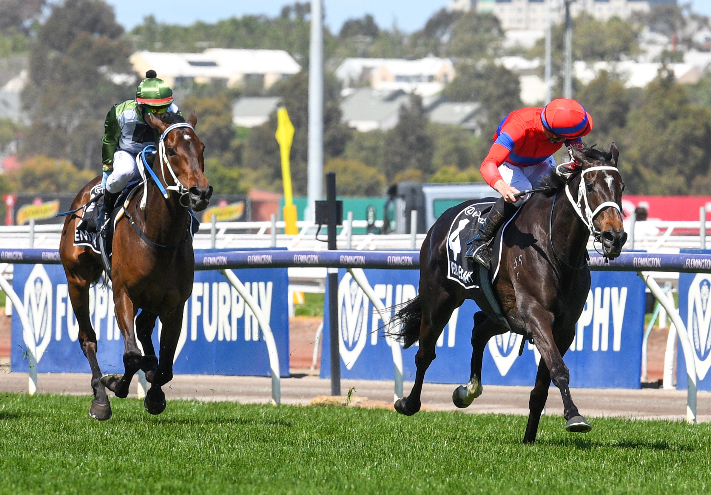 Under Racing Victoria (RV) and Victoria Racing Club COVID-19 protocols, the area is strictly reserved for jockeys, trainers, media and other race-day officials.