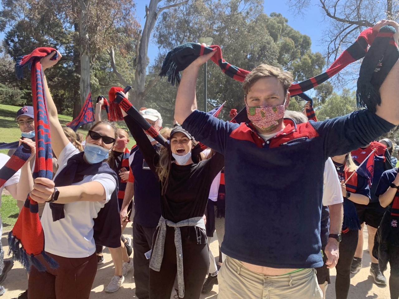 Back in Melbourne, some supporters gathered outside the MCG to celebrate the win in a socially distanced way.