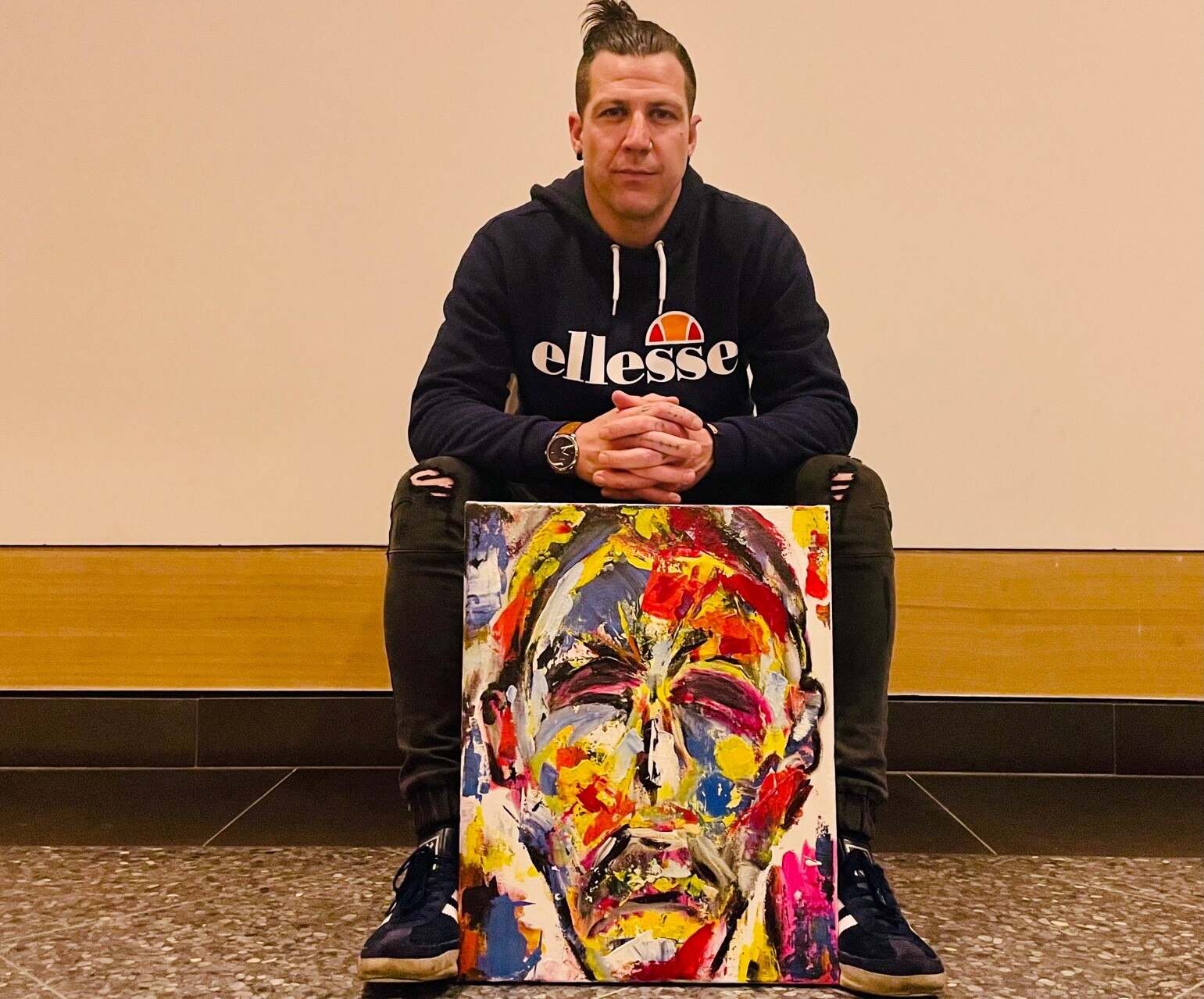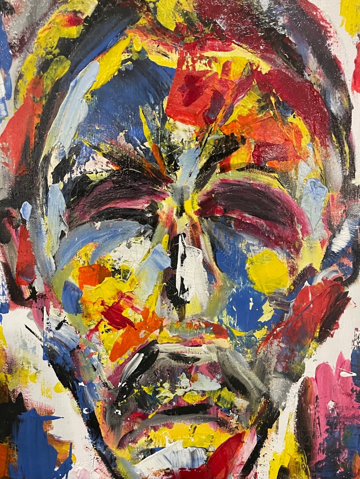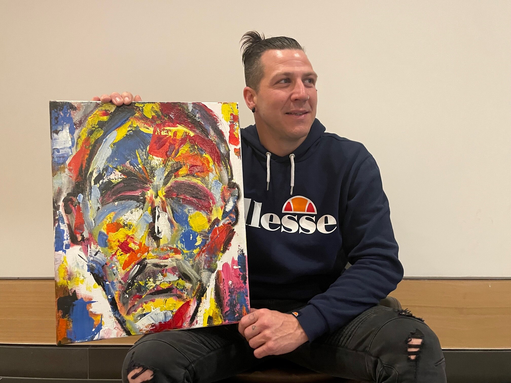 His powerful acrylic self-portrait — a showcase of the emotions he was grappling with as a drug addict — has now become a defining marker on his path to recovery.