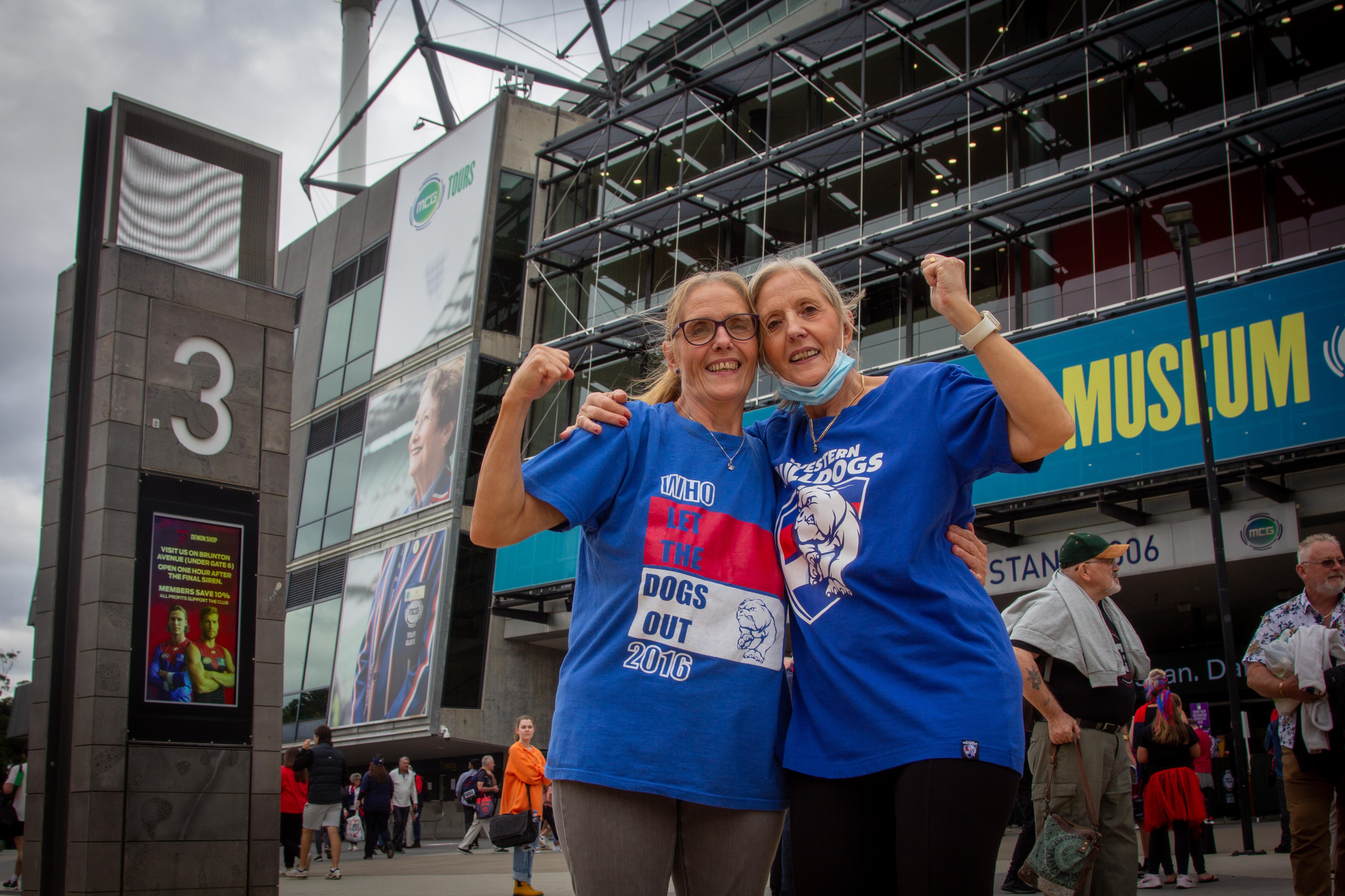 Die-hard Bulldogs supporter Vanessa Boyd has travelled from Perth to meet up with her twin sister, Valerie Kacarik, so they can attend the game.