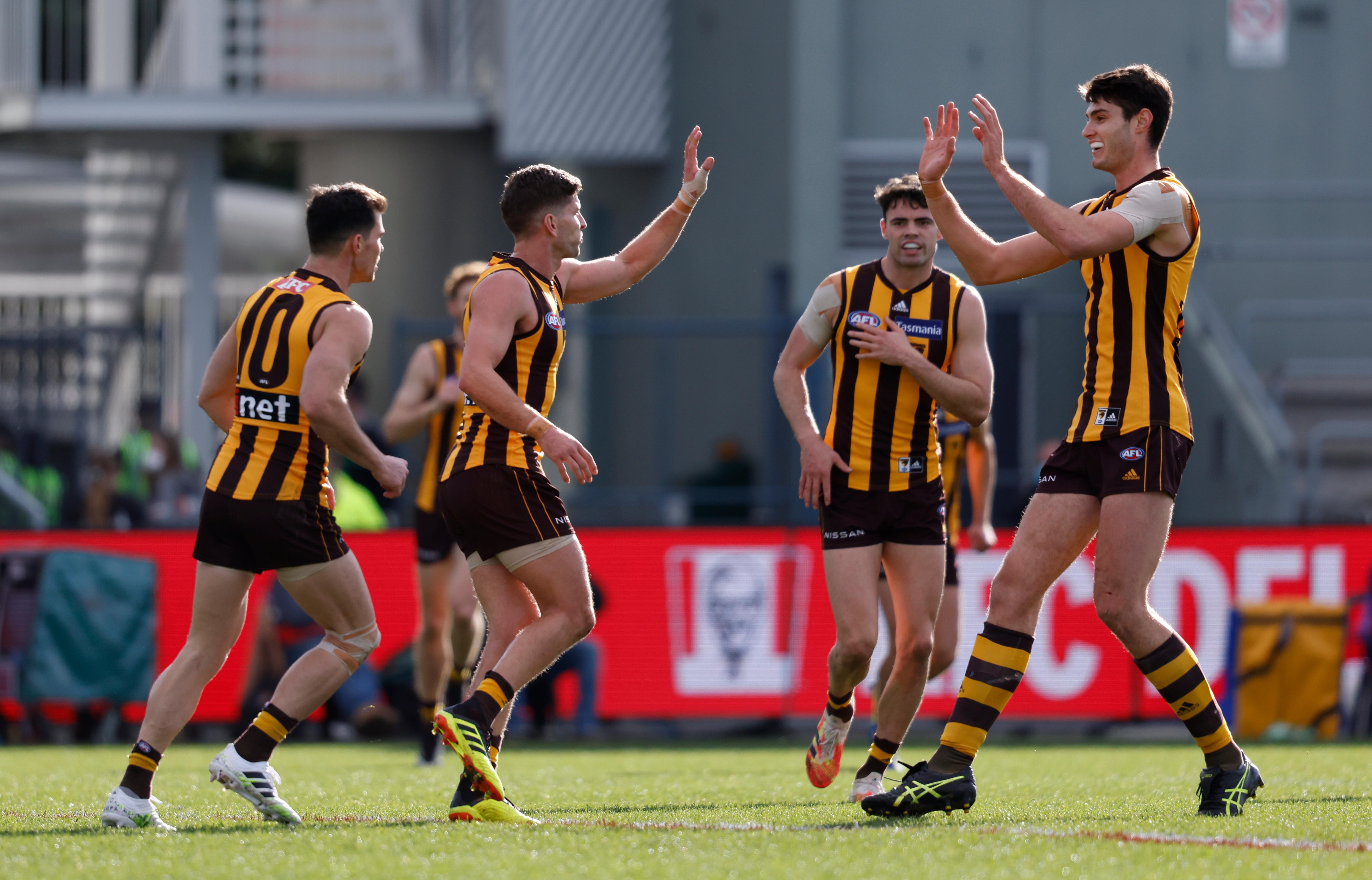 Meanwhile, Hawthorn overcame distractions surrounding the Alastair Clarkson-Sam Mitchell coaching handover to produce a stunning 12-point upset of finals-bound Brisbane in Launceston.