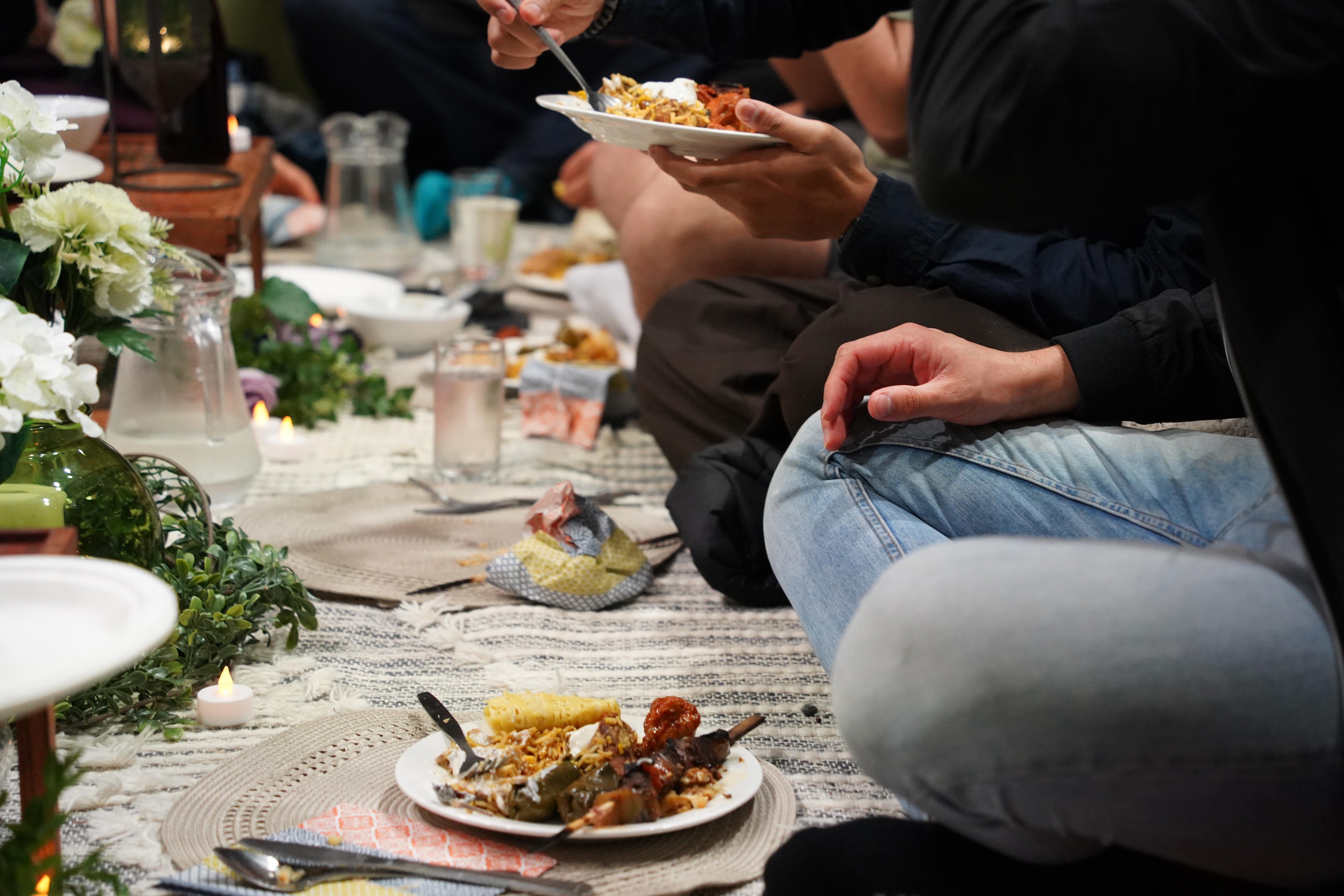 As the sun set in Melbourne, everyone gathered at the Iftar began to eat and celebrate being together.