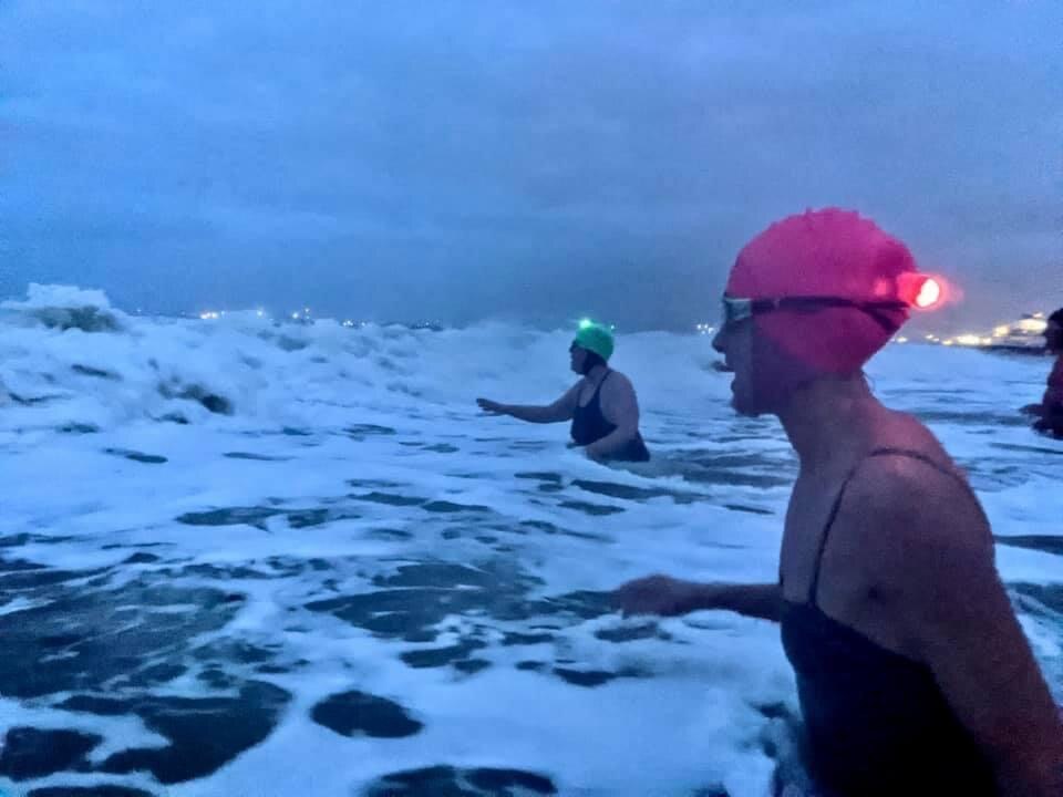 The swimmers have taken on the challenge of forgoing wetsuits on Wednesdays.
