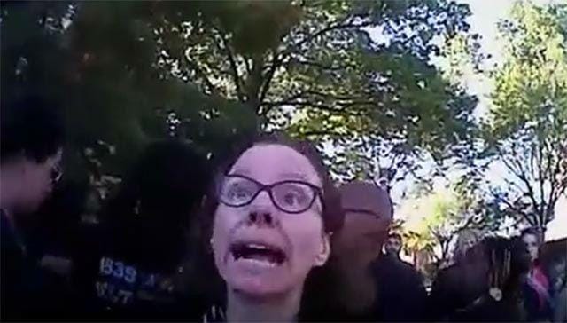 The Columbia Police Department released video from an October protest on the campus in which Melissa Click appears to be cursing at a police officer who is trying to clear a roadway. Ms Click and a group of student-demonstrators had locked arms and blocked a road during the university's homecoming parade in October.