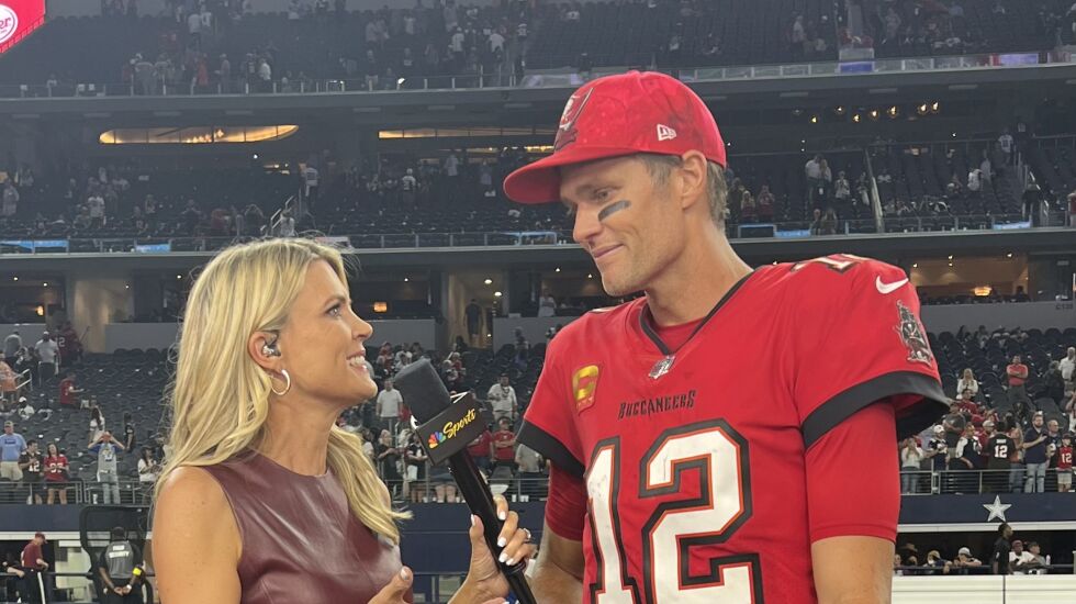 “On Twitter and Instagram, she posted a picture of Tom Brady and me from 20 years ago and then [Sunday],” said Stark, the sideline reporter for “Sunday Night Football.” “The kids just know so much. She goes, ‘Will you hire me?’ I’m not going to pay you.”