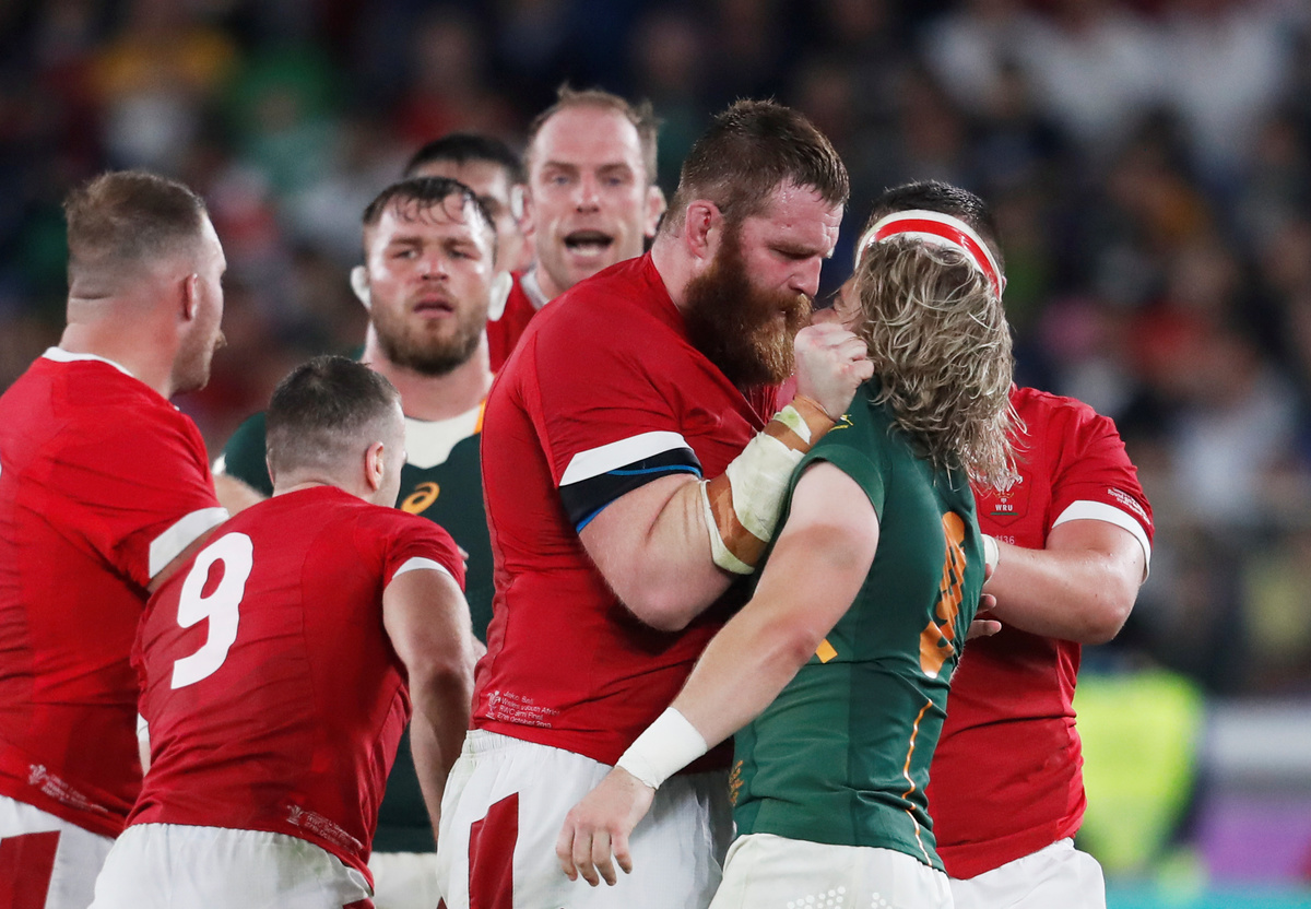 There have been few more stark mis-matches than the sight of the diminutive Faf de Klerk squaring up to man-mountain Jake Ball in South Africa's semi-final against Wales. A dire game sparked into life in the 45th minute when simmering tensions briefly boiled over leaving the 1.72m Springbok leaning up into his 1.97m opponent who grabbed De Klerk's collar. The pair were quickly separated, but the image spawned dozens of memes, some set to romantic music.
