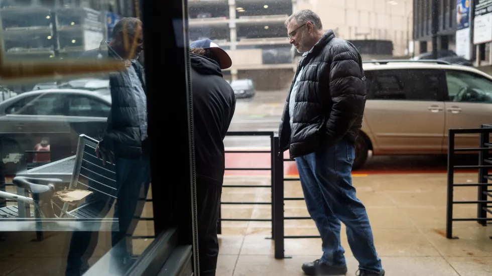 He continues, blending near-poetry and conspiracy theories, wild claims and philosophical riffing, as Billitteri, a caseworker at Thresholds, gently steers him out of the rain and into the restaurant, where she buys him a Taco Supreme (“If you could bless me with extra sour cream on the side,” he says) and tries to get Edgar to sign a form to help him get off the street and into housing. Where he sleeps now, he says, is “classified.”