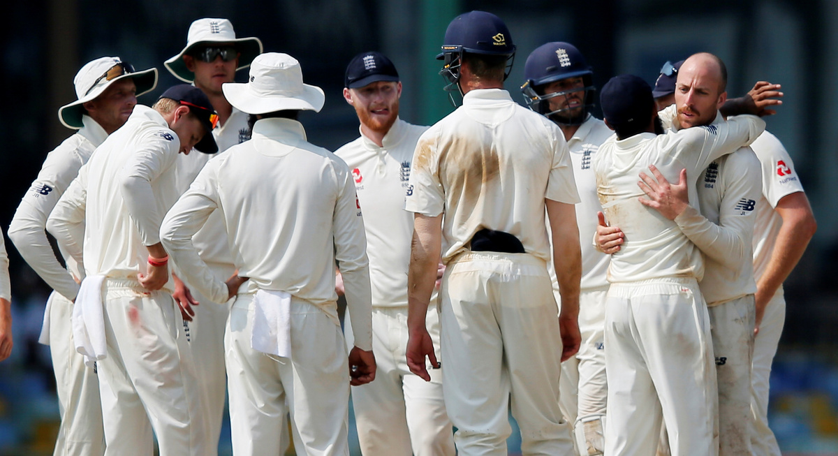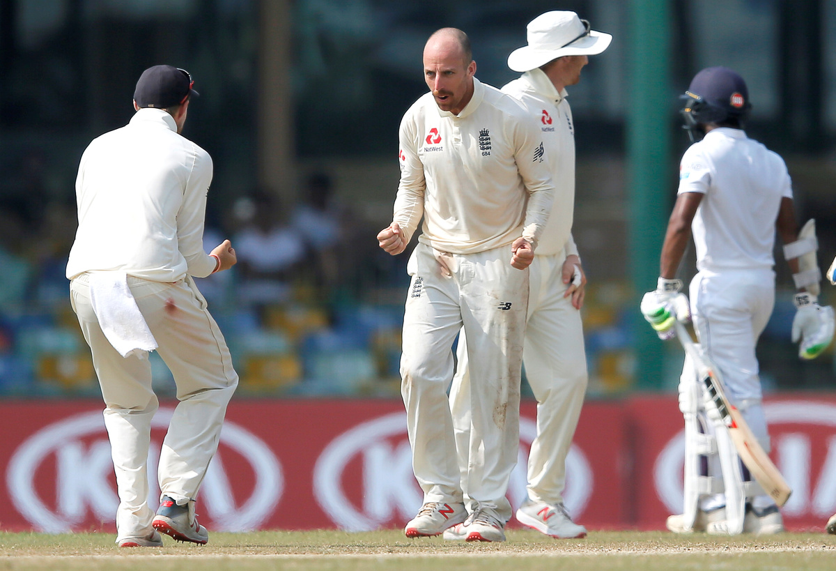 Leach (4-72) struck again to dismiss Niroshan Dickwella for 19 with Keaton Jennings enhancing his reputation as an exceptional close fielder by taking a smart bat-pad catch, his sixth of the match, at short leg.