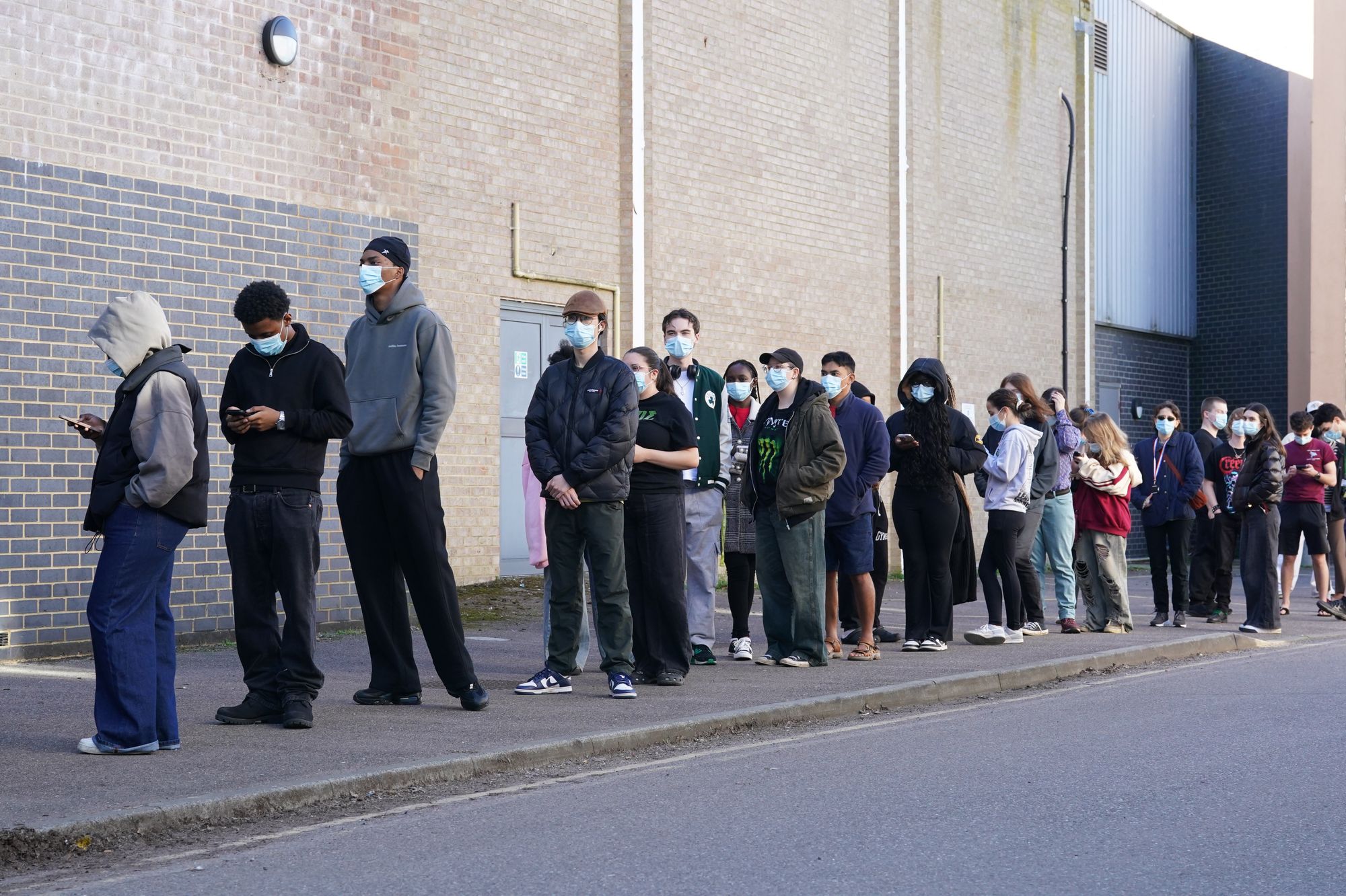 Security walked along the queue handing out blue face masks and telling students that they would not be allowed into the building without one.