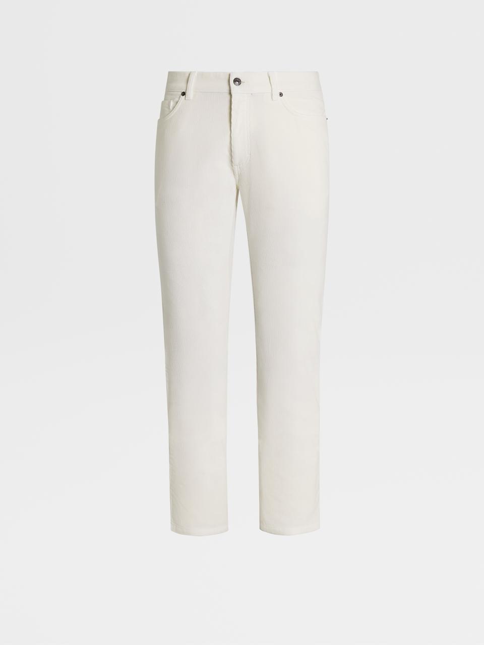 Ermenegildo Zegna-The classic, straight fit denim to complement a variety of contemporary outfit. The pure white, 5-pocket jeans are crafted from stretch cotton for all-day comfort and finished off with a leather logo tag. $575