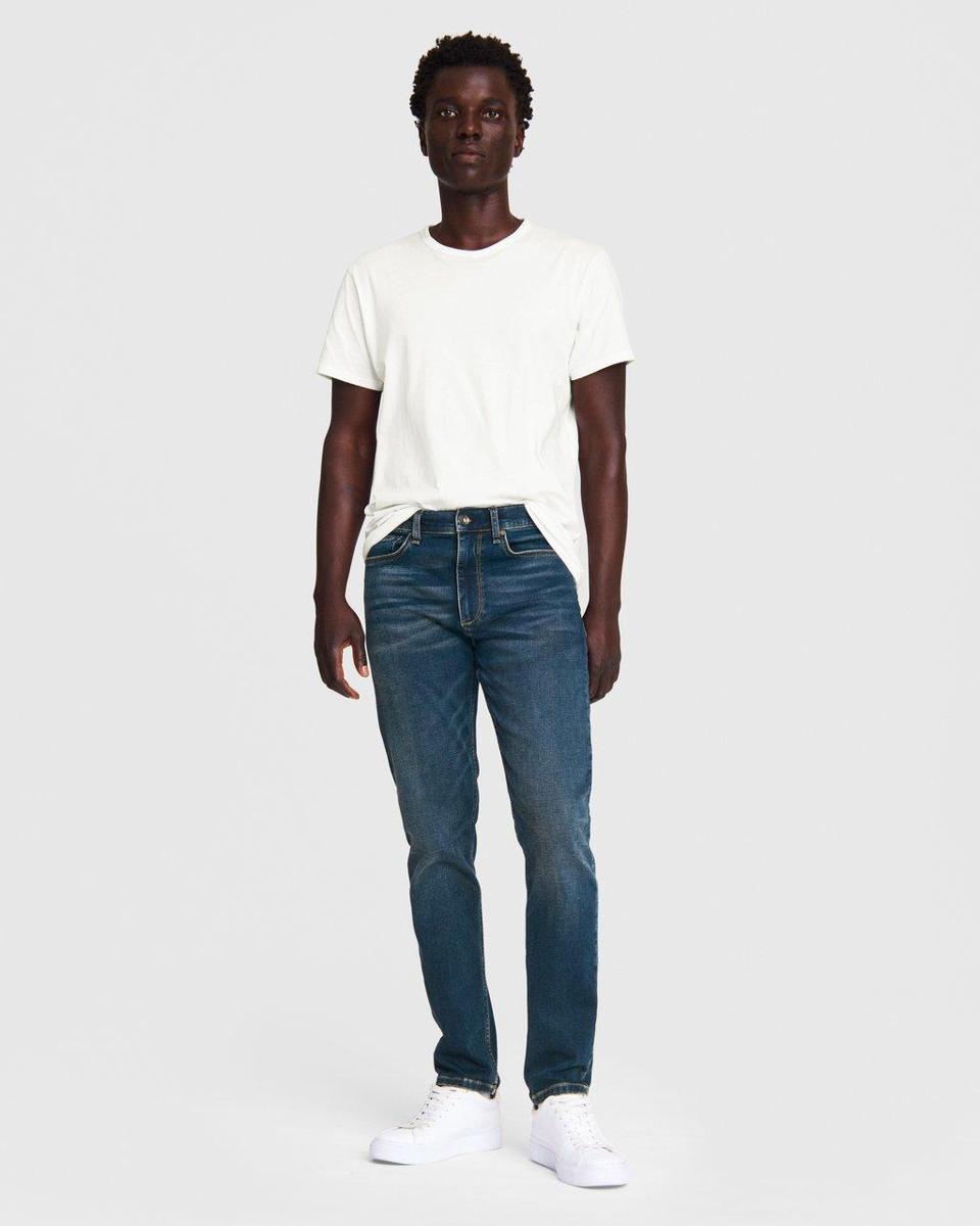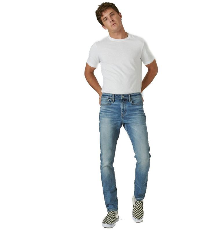 Lucky Brand—The 100 Skinny is Lucky Brand's newest, slimmest men's fit. Featuring a sleek narrow leg for a modern look and ample stretch, the jean is designed to move with the wearer for all-day comfort. The denim pairs well with your favorite graphic t-shirt and sneakers on the weekend, and dressed up for the office with a cable knit sweater and sleek boots. $99