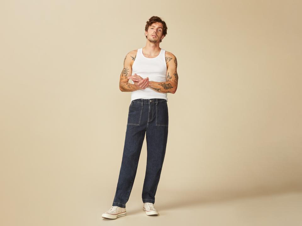 Warp + Weft If you are looking for a pair of durable jeans for work, carpenter jeans are a must-have for this Fall season. FRA is cut with room to breathe in the seat and thighs, coming to a gentle taper at the ankle. Milo is a dark rinse wash with contrast stitching for a bit of an edge.$88