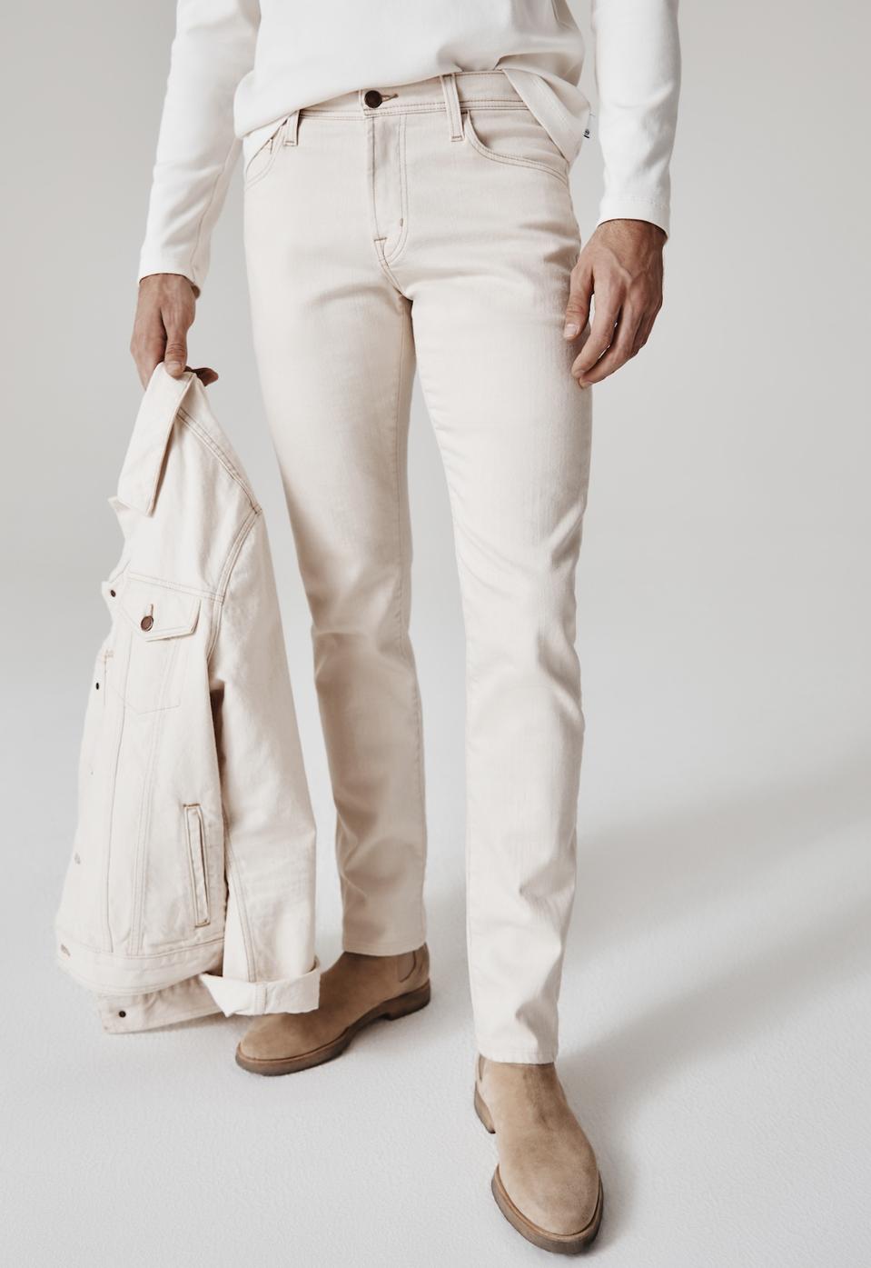 AG -Lighten up your fall wardrobe with cream denim. The Tellis, a modern slim jean. $198