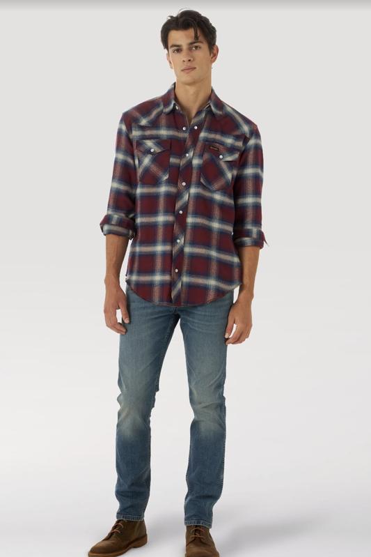 Wrangler-This tried-and-true slim and tapered style is the ideal “everyday” jean. It pays tribute to our past with legendary details, including copper rivets, five-pocket styling, a leather patch with the Wrangler rope logo, and the iconic ‘W’ embroidery on the back pockets. Keep it casual and wear it with your favorite tee or throw on a leather jacket for a night out. $99.00