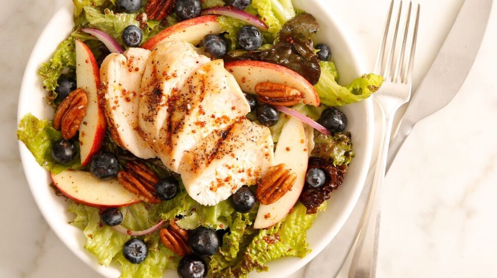 Whisk all dressing ingredients together in a small bowl. To assemble: In a large bowl, combine lettuce, blueberries, apple, onion and pecans and mix with 1/2 cup dressing. Arrange sliced turkey over lettuce and drizzle with additional dressing. (Recipe courtesy of Gwynn Galvin, SwirlsOfFlavor.com.)