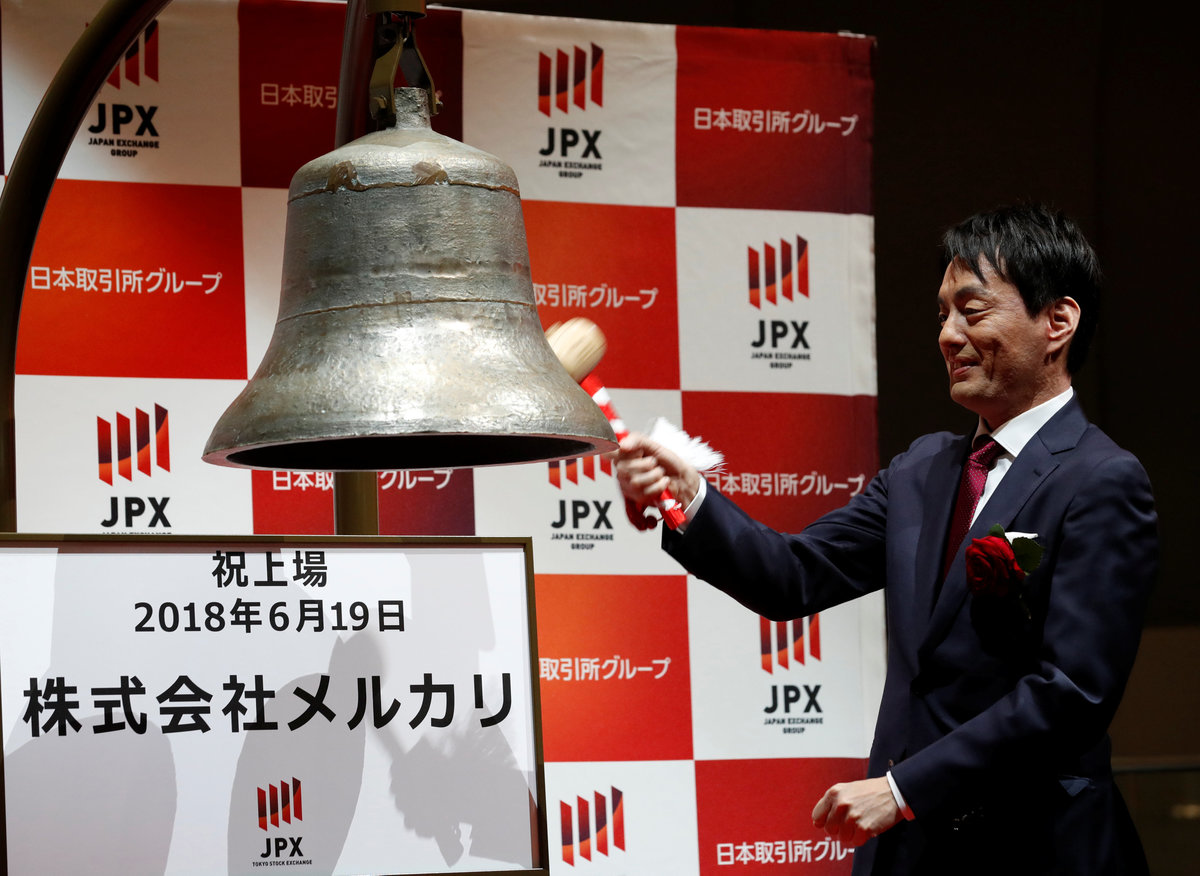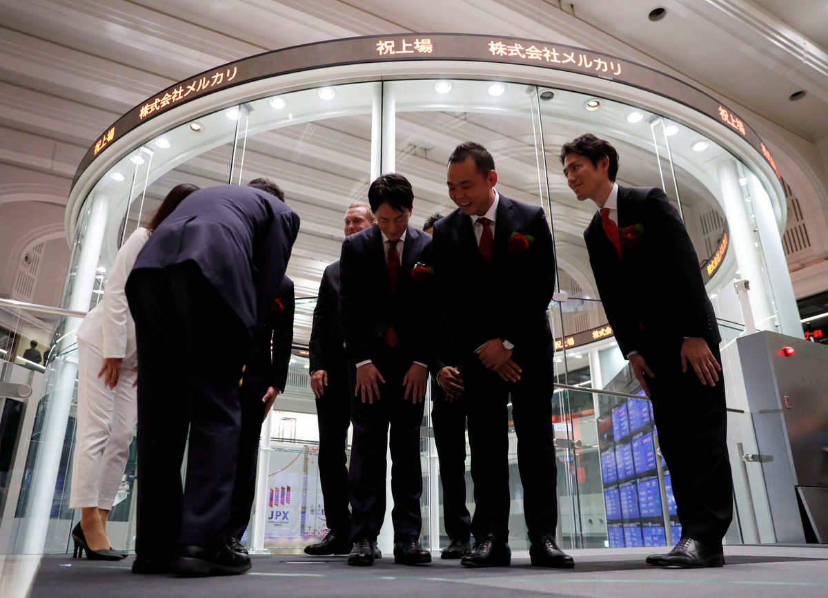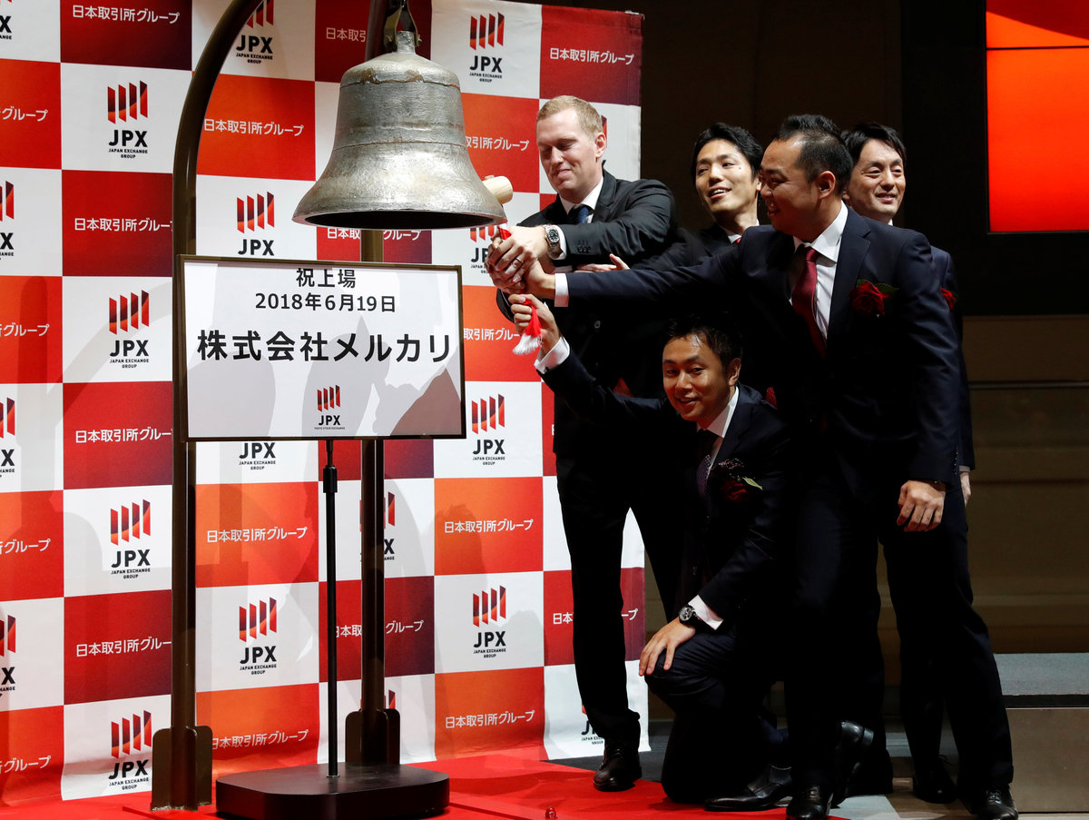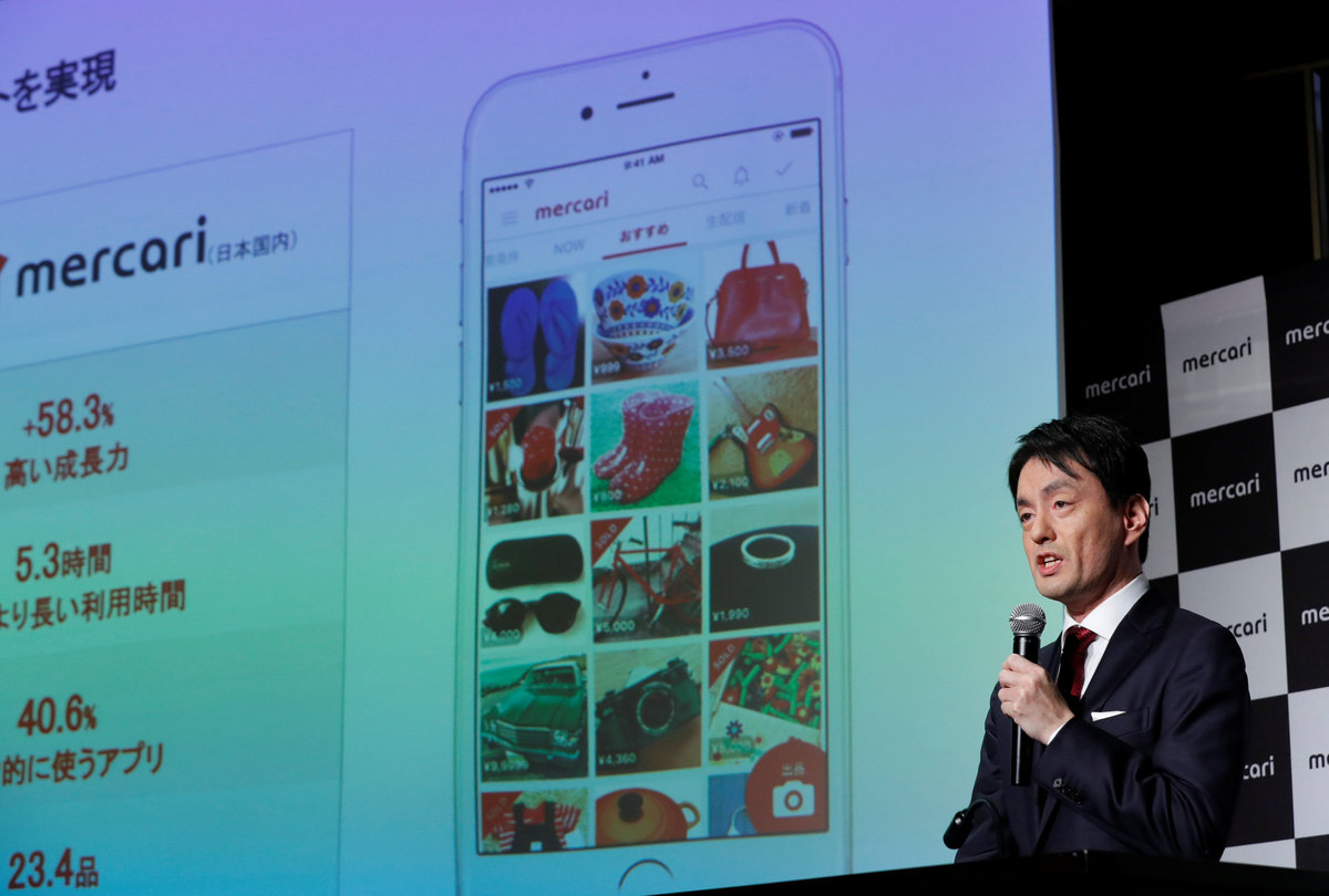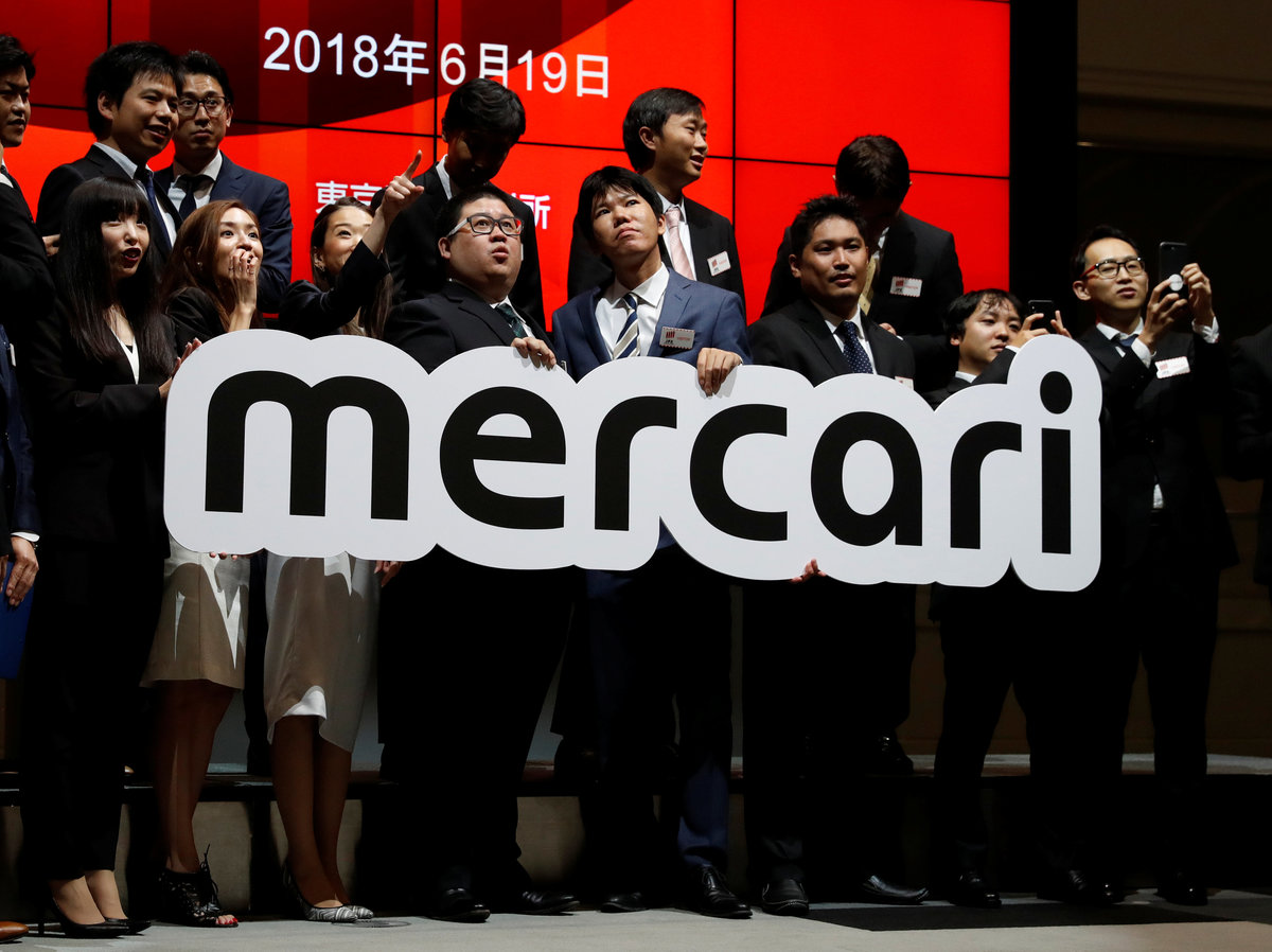 TOKYO (Reuters) - Flea market app operator Mercari Inc's shares surged 77 percent in their Tokyo stock market debut on Tuesday, underscoring strong investor appetite for a rare Japanese unicorn bent on U.S. expansion.