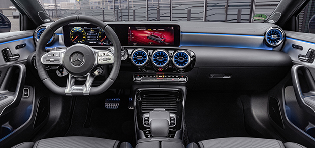 The A35 sedan receives special 18- or 19-inch wheels, beefier suspension setting and four-piston brake calipers up front.