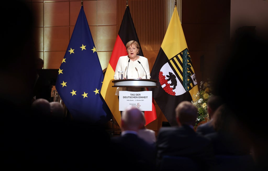 In what is expected to be one of her last major speeches, the outgoing chancellor said that “mentally and structurally, unification hasn't been completed yet.”