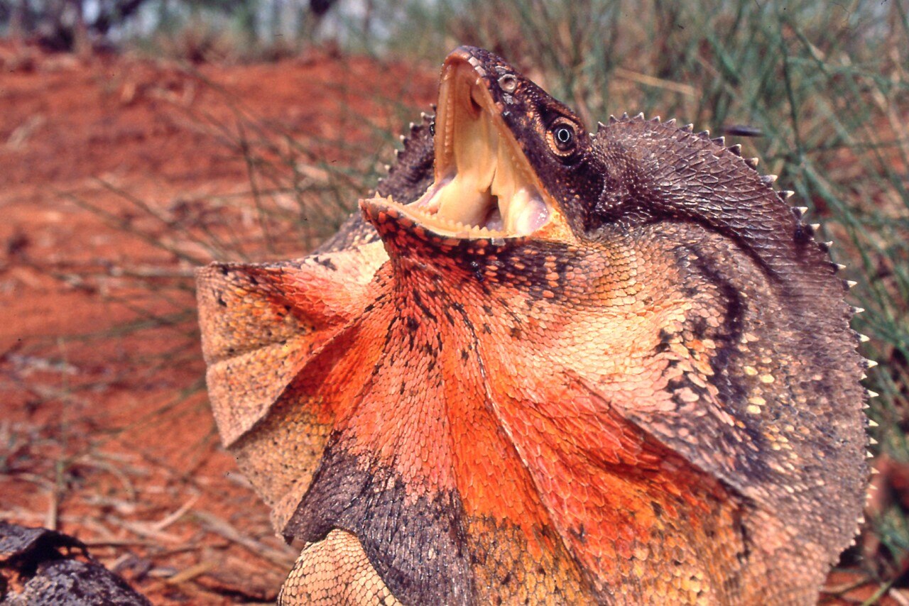 While stuck at Careening Bay for 18 days, the botanist on board the Mermaid, Alan Cunningham, took time to explore and stumbled on one of Australia's most iconic creatures, the frilled-neck lizard.