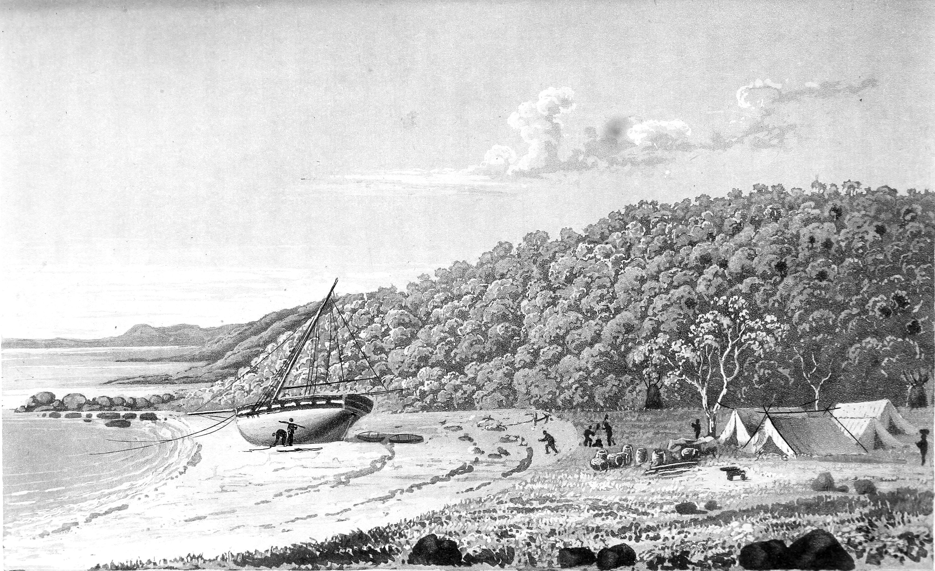 The ship was damaged, having hit a sandbank off the Queensland coast weeks prior, and realising it was sinking, the commander, Lieutenant Phillip Parker King, stopped at Careening Bay to make repairs.