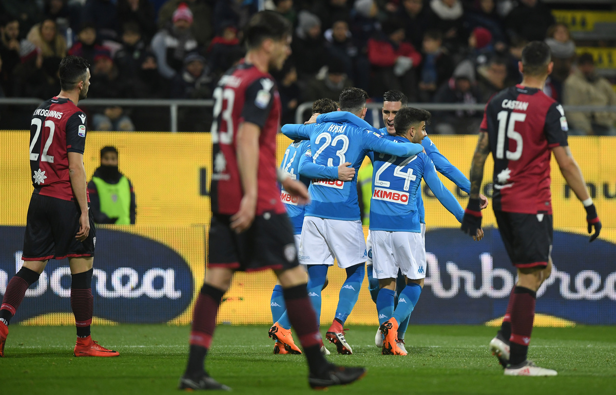 A stunning finish from Dries Mertens earned Napoli a 1-0 win at Cagliari that moved them above the Sardinian side and into eighth place in Serie A on Sunday.