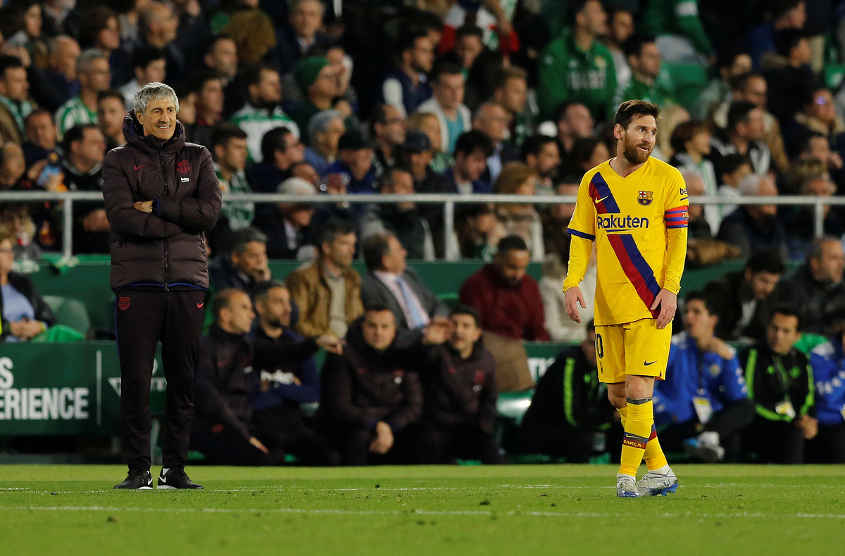 Barca coach Quique Setien was making his first appearance back at Betis since being sacked by the Seville club last May and desperately needed a victory after Real had beaten Osasuna 4-1 earlier in the day.