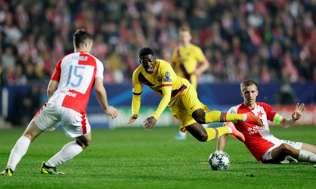 Soccer Football - Champions League - Group F - SK Slavia Prague v FC Barcelona - Eden Arena, Prague, Czech Republic - October 23, 2019 Barcelona's Ousmane Dembele in action with SK Slavia Prague's Tomas Soucek and Ondrej Kudela REUTERS/David W CernySoccer Football - Champions League - Group F - SK Slavia Prague v FC Barcelona - Eden Arena, Prague, Czech Republic - October 23, 2019 Barcelona's Luis Suarez, Sergio Busquets and Clement Lenglet celebrate after SK Slavia Prague's Peter Olayinka scores an own goal and Barcelona's second REUTERS/David W CernySoccer Football - Champions League - Group F - SK Slavia Prague v FC Barcelona - Eden Arena, Prague, Czech Republic - October 23, 2019 Barcelona's Frenkie de Jong in action with SK Slavia Prague's Jan Boril REUTERS/David W CernySoccer Football - Champions League - Group F - SK Slavia Prague v FC Barcelona - Eden Arena, Prague, Czech Republic - October 23, 2019 Barcelona's Lionel Messi in action REUTERS/David W CernySoccer Football - Champions League - Group F - SK Slavia Prague v FC Barcelona - Eden Arena, Prague, Czech Republic - October 23, 2019 Barcelona's Luis Suarez in action with SK Slavia Prague's Ondrej Kudela REUTERS/David W CernySoccer Football - Champions League - Group F - SK Slavia Prague v FC Barcelona - Eden Arena, Prague, Czech Republic - October 23, 2019 SK Slavia Prague's Nicolae Stanciu in action with Barcelona's Jordi Alba REUTERS/David W CernySoccer Football - Champions League - Group F - SK Slavia Prague v FC Barcelona - Eden Arena, Prague, Czech Republic - October 23, 2019 Barcelona coach Ernesto Valverde gestures REUTERS/David W Cerny