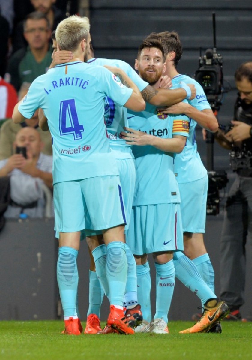 With the game still goalless Messi missed a gilt-edged chance after dancing through the Bilbao defence, striking the near post with the goal gaping, but he made amends by breaking the deadlock in the 36th minute.