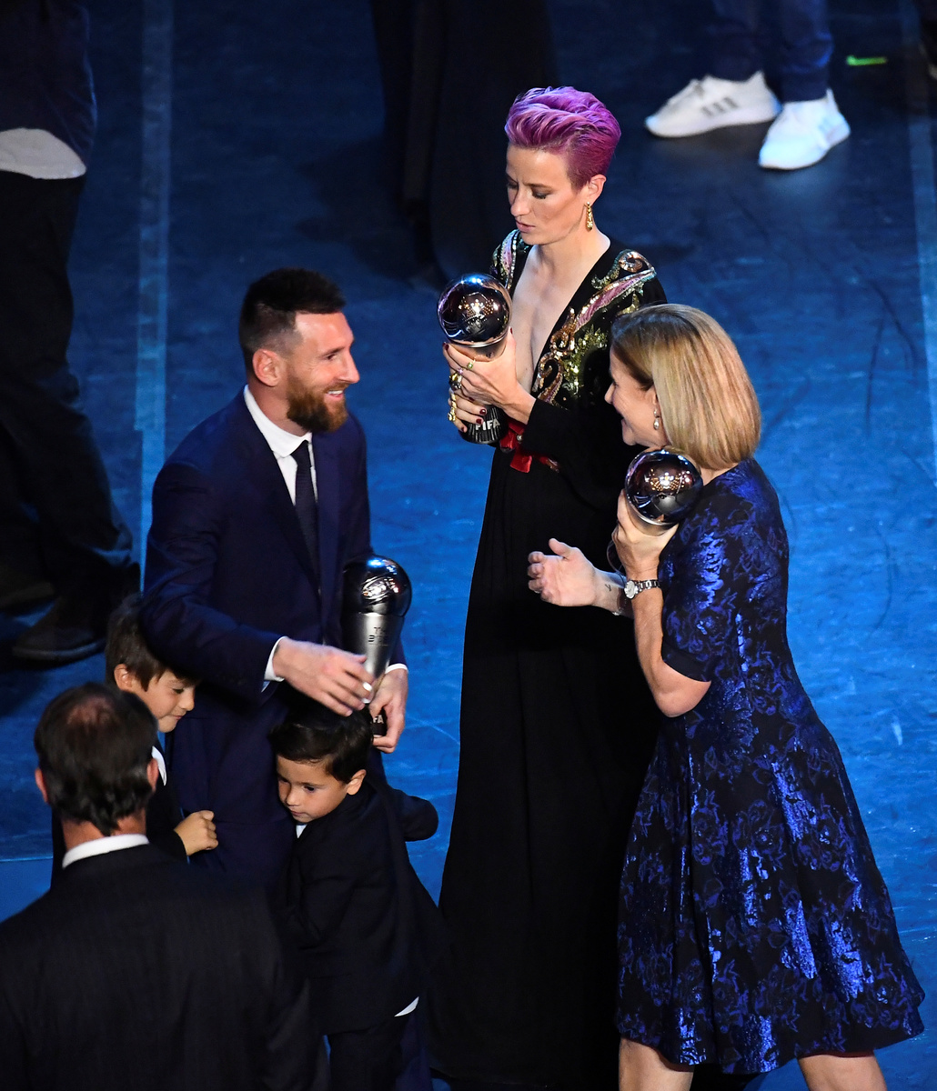 Soccer Football - The Best FIFA Football Awards - Teatro alla Scala, Milan, Italy - September 23, 2019 Presenter Ruud Gullit shakes hands with FC Barcelona's Lionel Messi after Messi won the Best FIFA Men's player award while presenter Ilaria D’Amico and FIFA President Gianni Infantino look on REUTERS/Flavio Lo ScalzoSoccer Football - The Best FIFA Football Awards - Teatro alla Scala, Milan, Italy - September 23, 2019 FC Barcelona's Lionel Messi poses with his wife Antonella Roccuzzo and their sons after winning the Best FIFA Men's player award REUTERS/Flavio Lo ScalzoSoccer Football - The Best FIFA Football Awards - Teatro alla Scala, Milan, Italy - September 23, 2019 FIFA President Gianni Infantino presents FC Barcelona's Lionel Messi with the Best FIFA Men's player award as presenter's Ilaria D’Amico and Ruud Gullit look on REUTERS/Flavio Lo ScalzoSoccer Football - The Best FIFA Football Awards - Teatro alla Scala, Milan, Italy - September 23, 2019 FC Barcelona's Lionel Messi poses after winning the Best FIFA Men's player award with the winner of the Best FIFA Women's player award USA women's Megan Rapinoe REUTERS/Flavio Lo ScalzoSoccer Football - The Best FIFA Football Awards - Teatro alla Scala, Milan, Italy - September 23, 2019 FC Barcelona's Lionel Messi poses after winning the Best FIFA Men's player award with the winner of the Best FIFA Men's coach award Liverpool manager Juergen Klopp, winner of the Best FIFA Women's player award USA women's Megan Rapinoe and the winner of the Best FIFA Women's coach award USA women's coach Jill Ellis REUTERS/Flavio Lo Scalzo