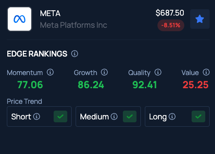 Benzinga's Edge Stock Rankings indicate Meta stock has a value in the 25th percentile. Here is how the stock is placed among other tech bigwigs.