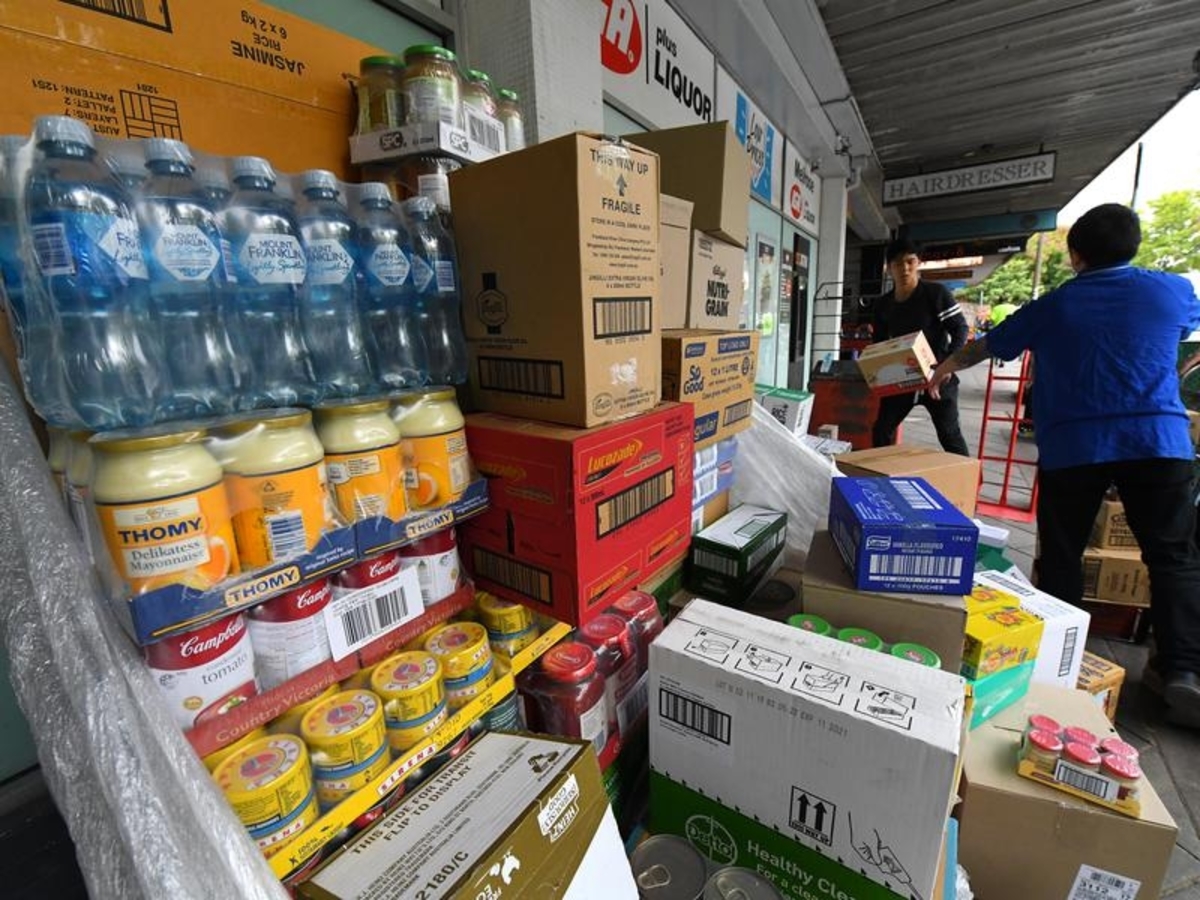 Supermarket and liquor sales each rose by more than 14 per cent as shoppers hoarded goods to cope with coronavirus lockdowns and uncertainty.