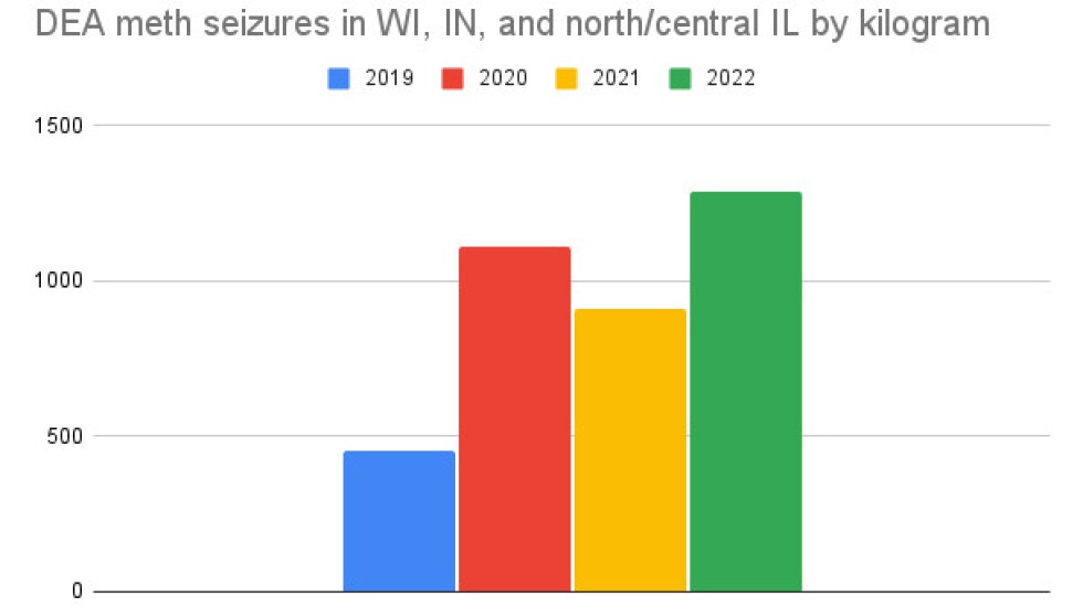 Also, the U.S. Drug Enforcement Administration has reported a bump in seizures of the illicit drug in the Chicago area as well as Wisconsin and Indiana.