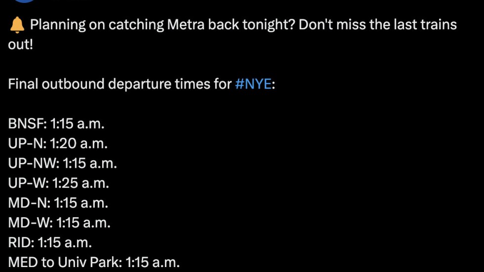 The train usually departs at 12:40 a.m., but Metra said it ordered BNSF to hold it until 1:15 a.m. for the holiday.