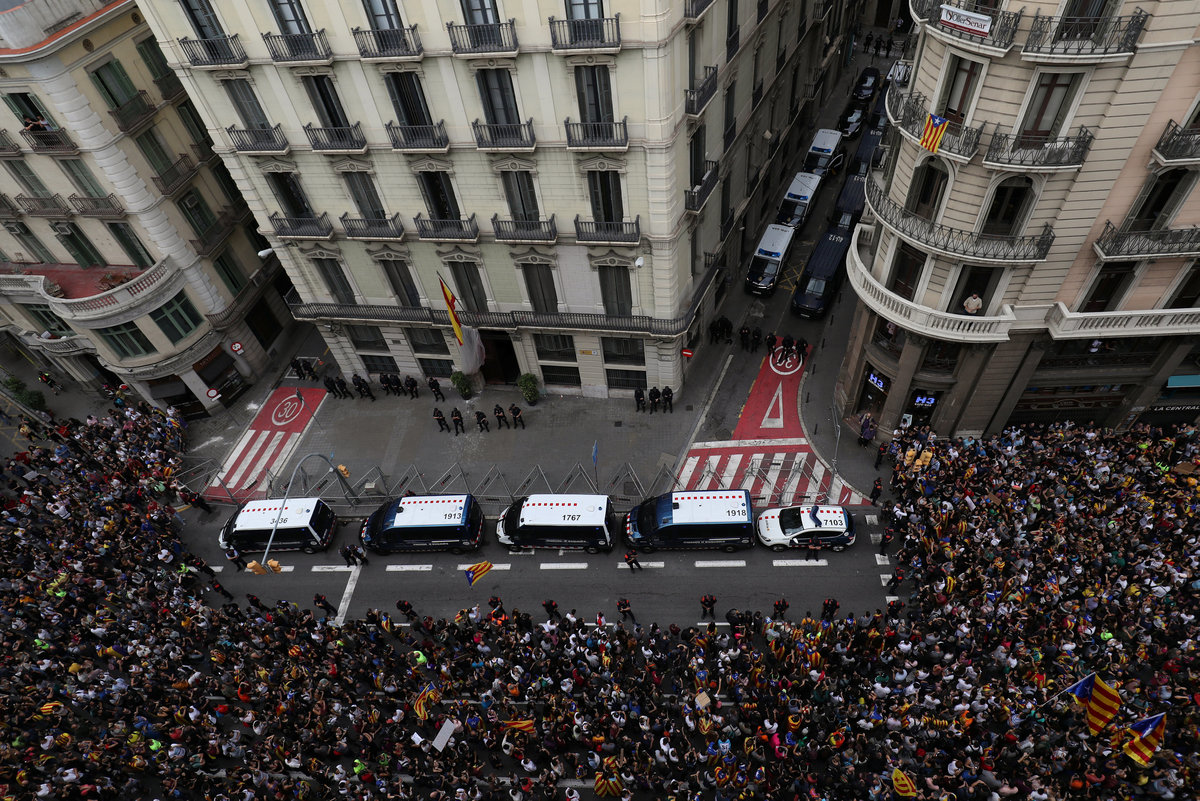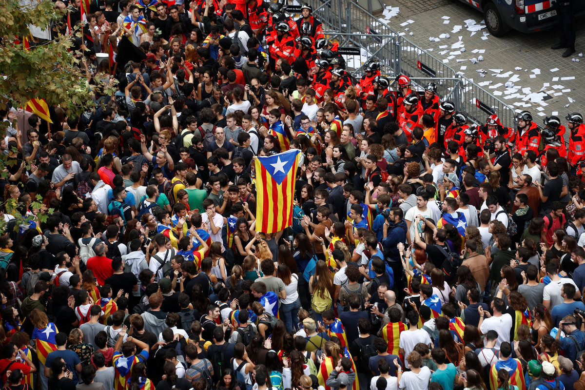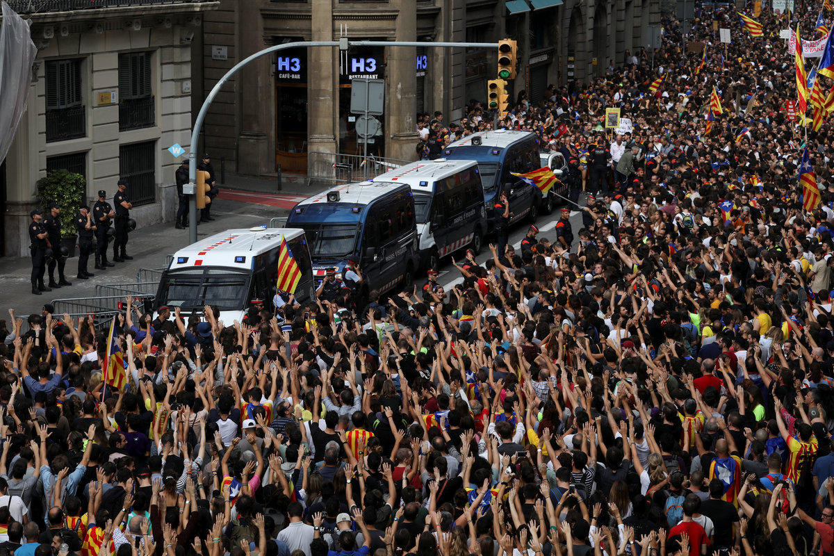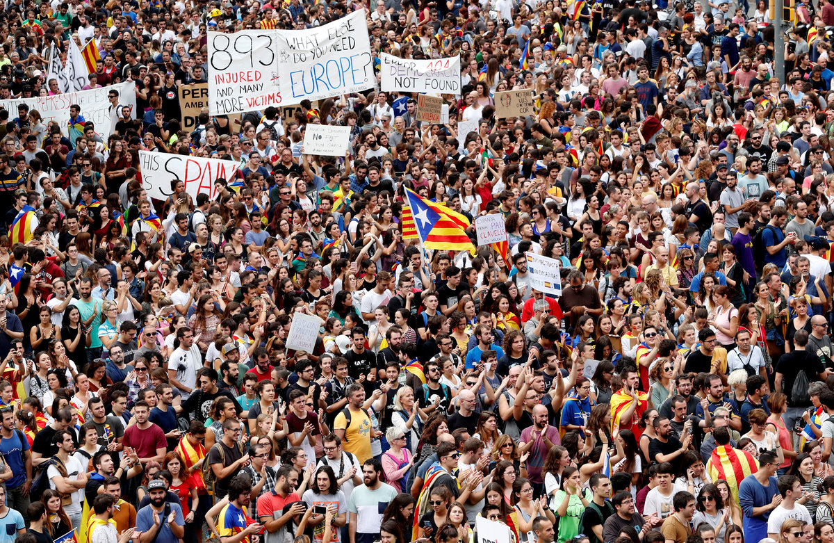 On Tuesday tens of thousands of Catalans demonstrated in the streets of the northeastern region against action by the police who tried to disrupt Sunday's vote by firing rubber bullets and charging into crowds with truncheons.